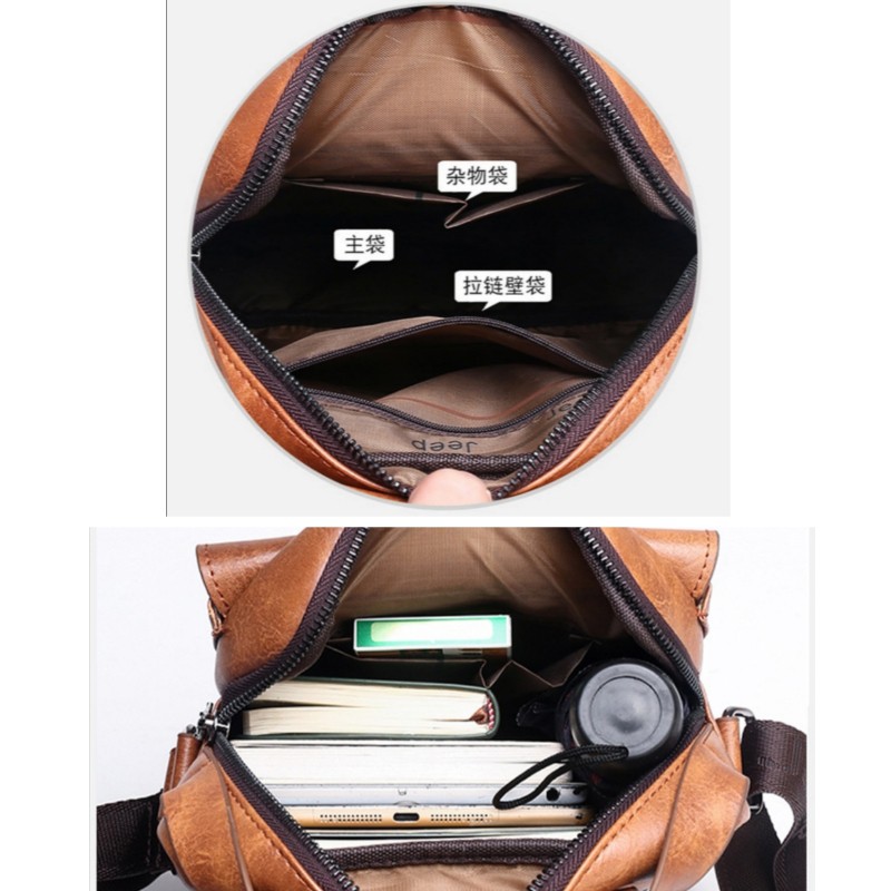 JEE BULUO Men Sling Messenger Bag Man Crossbody Shoulder Bag Leather Sling Beg Bahu Silang Sandang Lelaki Kulit 1106