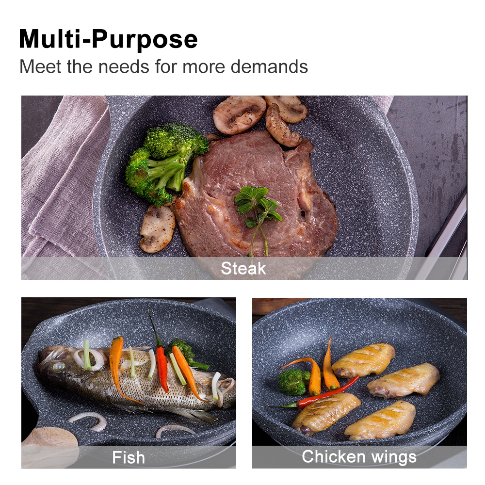 JEETEE Granite Frying Pan Non Stick 20/24/28CM Induction Cooker Cooking Pan Suitable for All Stoves