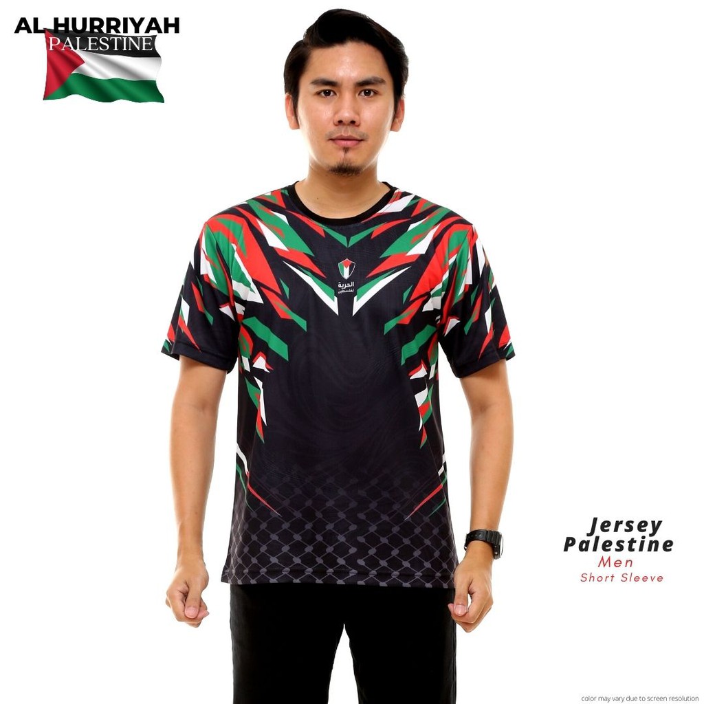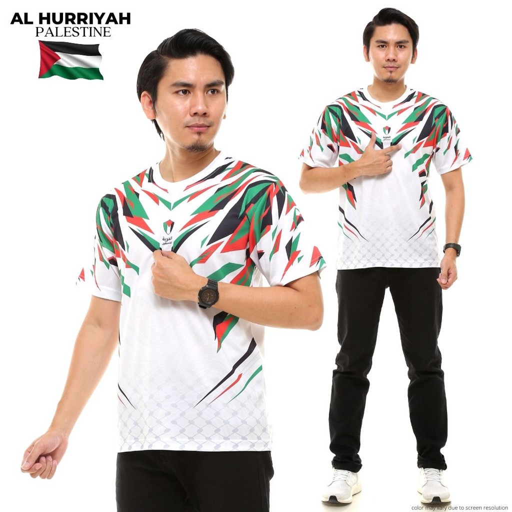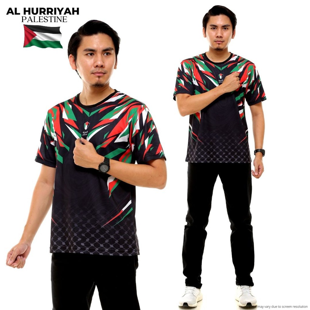 JERSEY PALESTINE MEN BLACK & WHITE ROUND NECK Jersey Lelaki Hitam Putih Plus Size Lengan Pendek Selesa Ironless