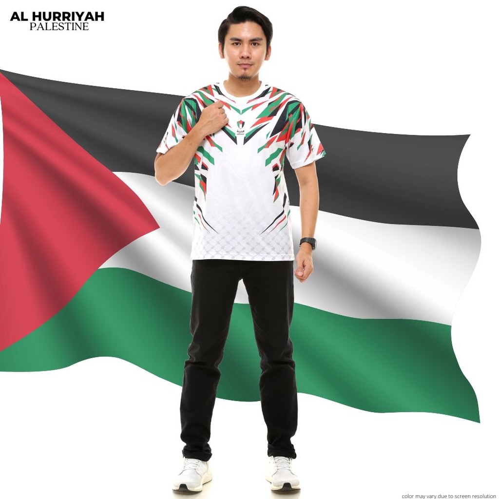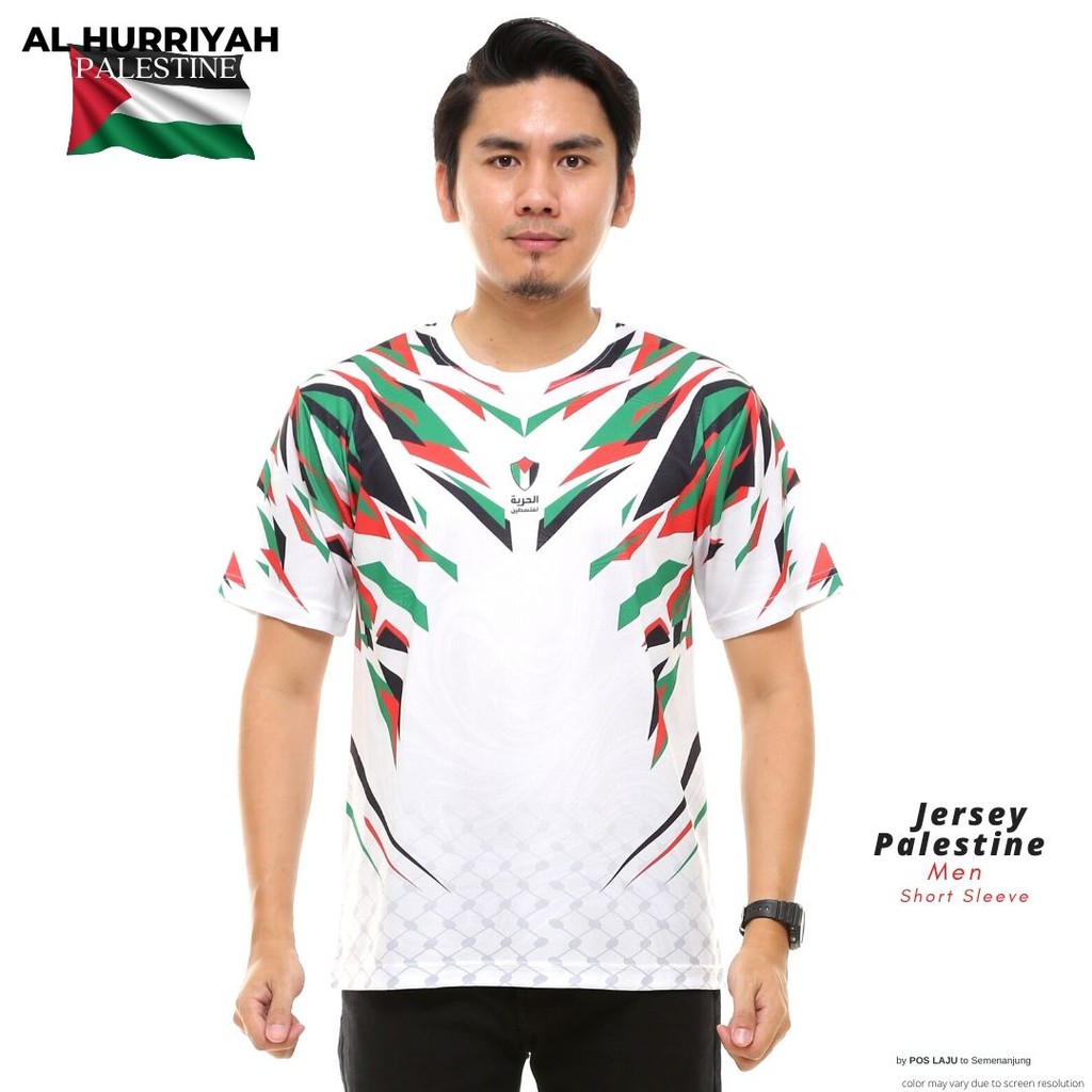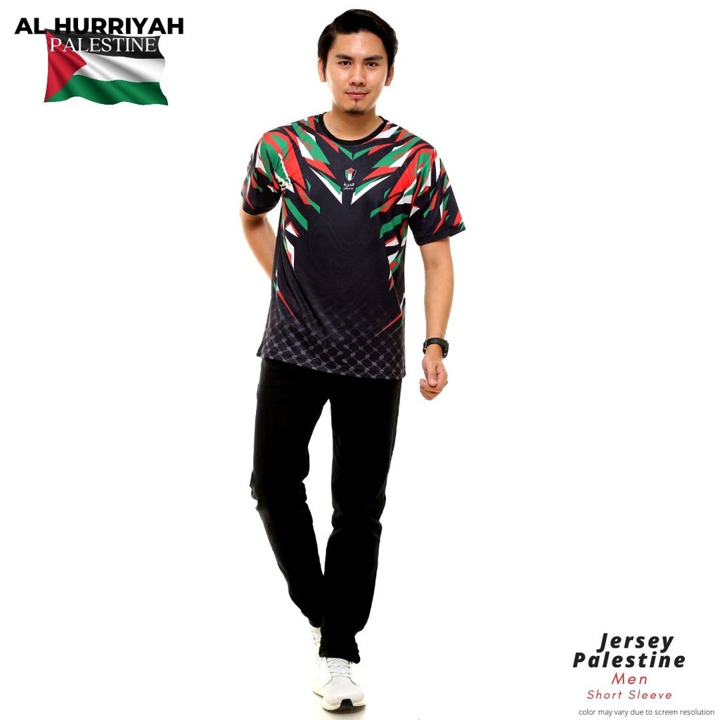 JERSEY PALESTINE MEN BLACK & WHITE ROUND NECK Jersey Lelaki Hitam Putih Plus Size Lengan Pendek Selesa Ironless