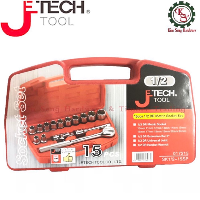 JETECH Cr.Vanadium Box Socket Wrench Set (PVC CASE) 15PCS SK1/2-15SP