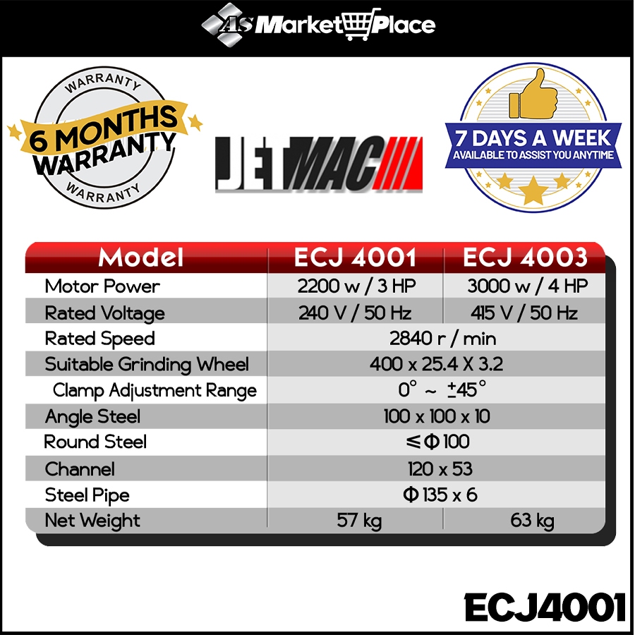 JETMAC 16" Cut Off Saw 3HP/240V (Cast Iron) ECJ4001