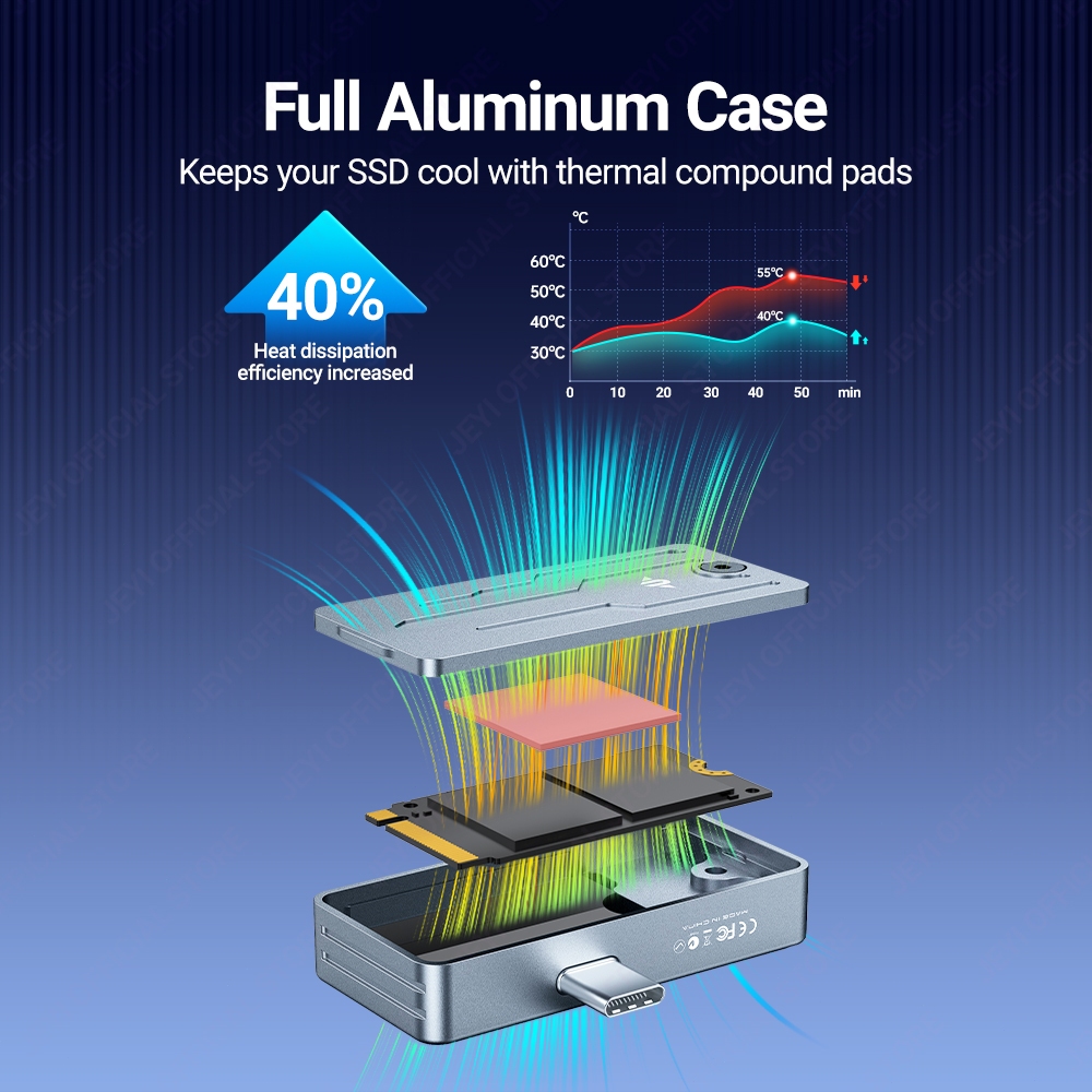 JEYI 2230/2242 M.2 NVMe Direct-attach SSD Enclosure, USB 3.2 10Gbps Direct Plug Aluminum SSD Enclosure