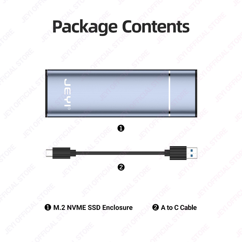 JEYI Aluminum M.2 NVME SSD Enclosure Adapter, USB 3.2 Gen 2 (10 Gbps) to NVME M-Key/(B+M) Key SSD External Case Trim for NVME SSD 2230/2242/2260/2280