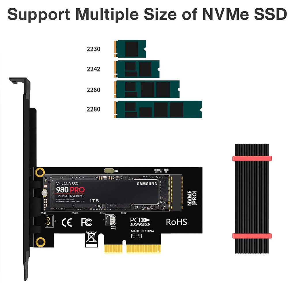 JEYI PCIe to NVMe Adapter With Aluminum SSD Heatsink Cooler, 64Gbps M.2 ssd Gen4 PCIe 4.0 X4 X8 X16 Expansion Card for Desktop