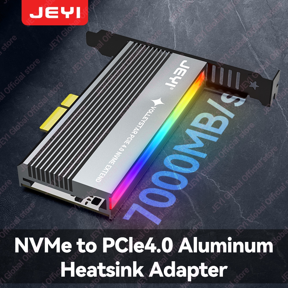 JEYI VolleyStar PCIE To NVMe Adapter With Aluminum Alloy Heatsink, M.2 RGB PCIe 4.0 Card With 1/2U Low Standard Profile Bracket