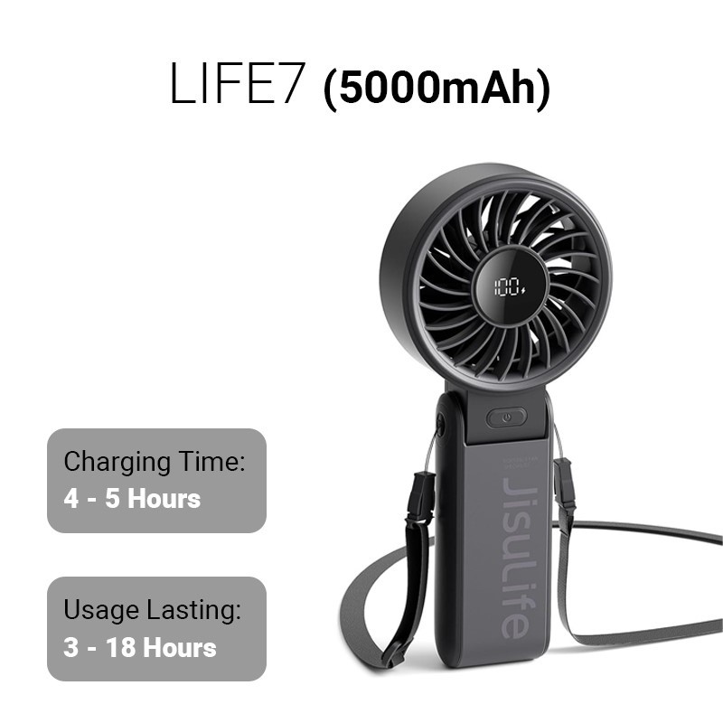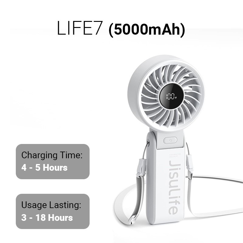 JISULIFE Life 7 Handheld Fan Portable Rechargeable Mini Fan with Strong Airflow & Compact Travel Design