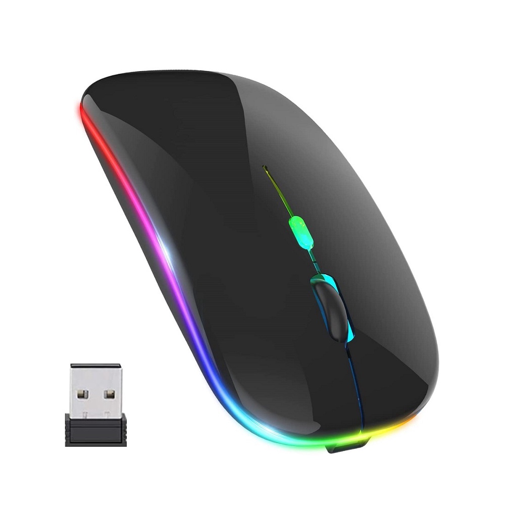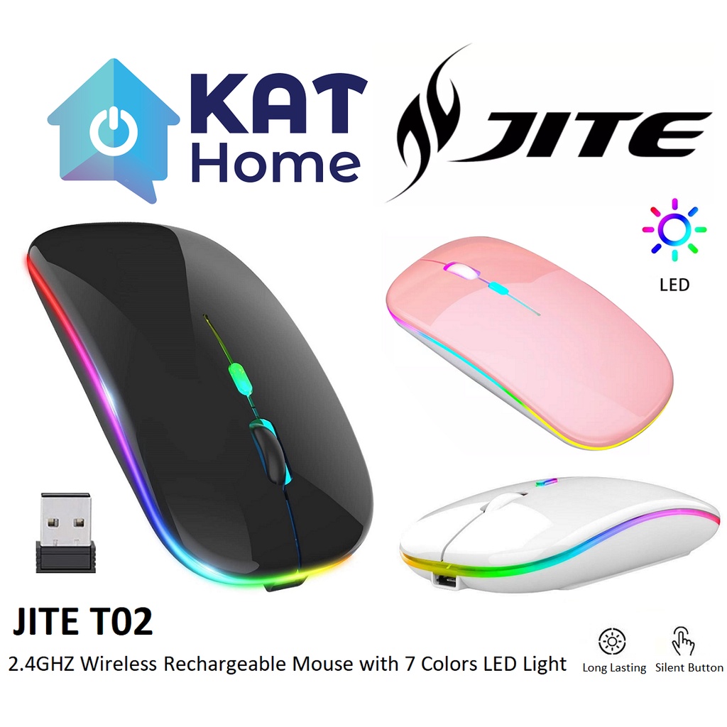 JITE T02 2.4Ghz WIRELESS RECHARGEABLE RGB MOUSE USB SILENT OPTICAL MICE WITH 7 COLORS LED LIGHT & 3 LEVEL ADJUSTABLE DPI