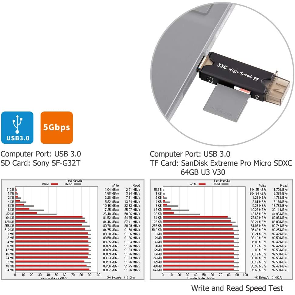 JJC 3-in-1 High Speed Card Reader with USB 3.0 / Type C / Micro USD Port for SD SDHC SDXC Micro SD Card on Computer/ Laptop / Smart Phone
