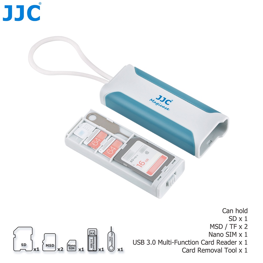 JJC 3-in-1 PC/Mobile Phone Multi-Card Reader with Memory Card Case - USB 3.0/Micro USB 2.0/Type-C Plugs