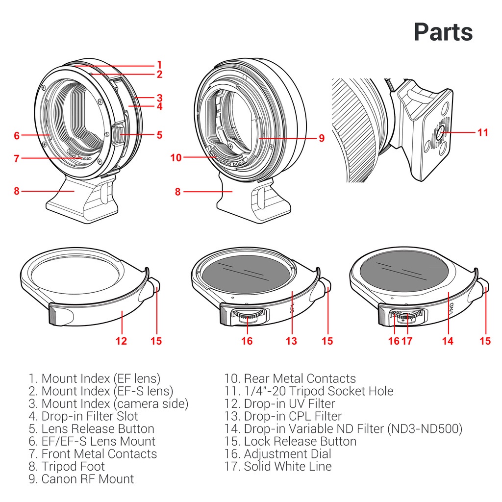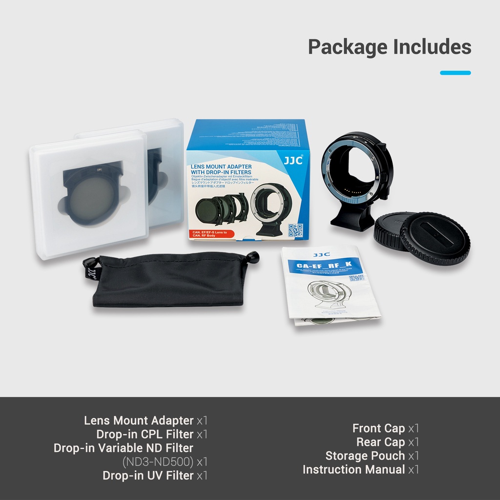 JJC EF-EOS R Lens Mount Adapter Kit with Drop-In CPL ND UV Filter for Attach Canon EF EF-S Mount Lens to RF Mount Mirrorless Camera Body Canon EOS R50 R10 R8 R7 R6 Mark II R6 R5 R3 RP R Ra