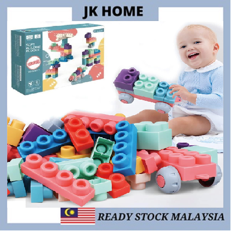 JK HOME 20Pcs / 50Pcs / 80Pcs Chewable Toy Educational Learning Kids Soft Building Blocks Silicone Rubber