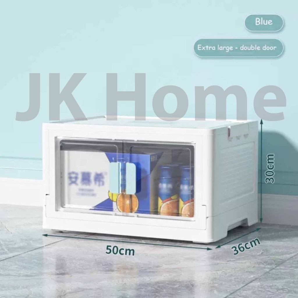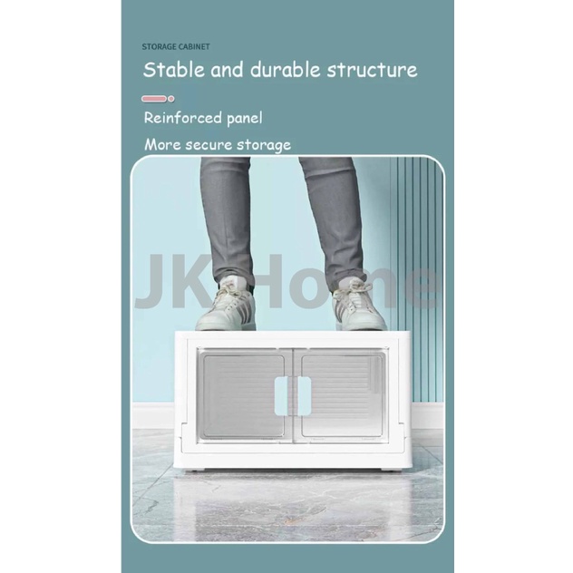 JK HOME Stackable Foldable Large Storage Box Cabinet Organizers | Transparent | Three Side Openings | With Roller