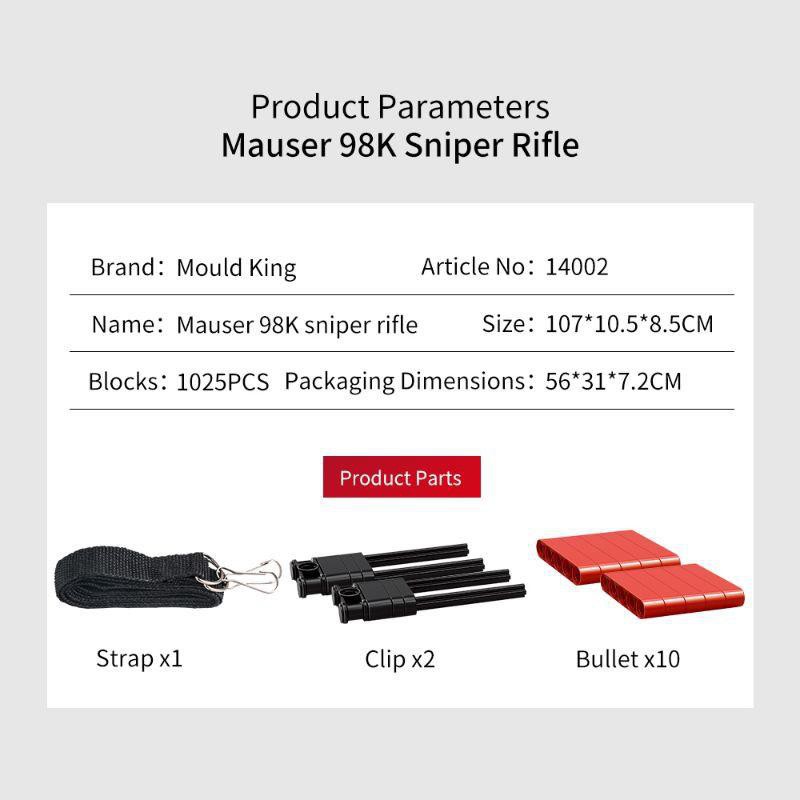 JKTOYS Mould King 14002 Mauser 98k Block Shooting Gun Building Bricks 1025+pcs