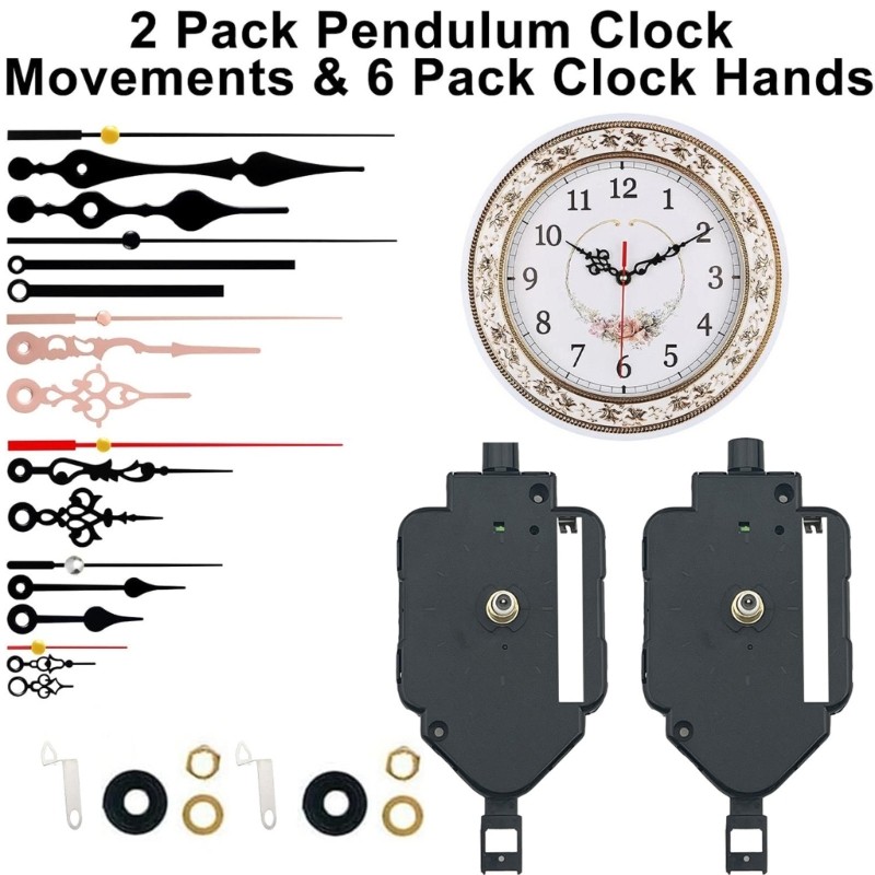 JL 2 Pack Quartzs Pendulum Clock Movement Mechanism Kits with 6 Pair of Clock Hands Set for Clock Repair Replacement Par