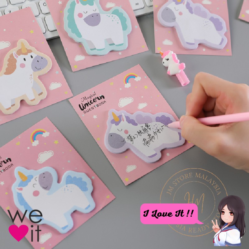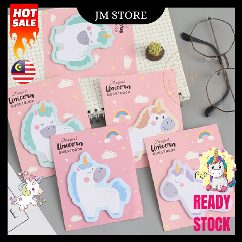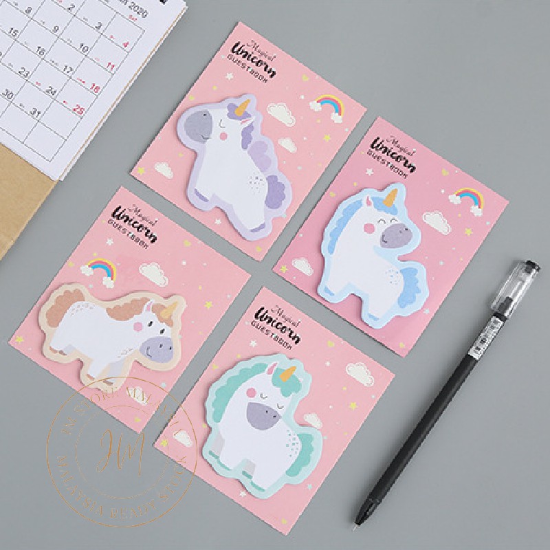 JM.Unicorn Cute Cartoon Post-it Sticky Note Sticky Memo Pad Bookmark Sticker Note Office School Buku 555 Ready Stock