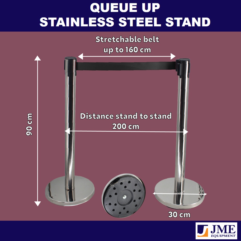 JME Ready Stock Q Stand Stackable Stainless Steel Retractable Belt Q Up Stand 2 Meter 2set