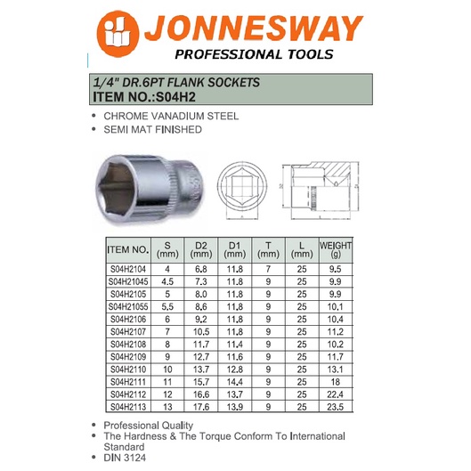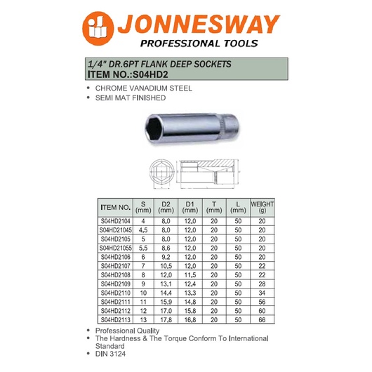 JONNESWAY TAIWAN 1/4" 6PT 4-14MM CHROME SOCKET STANDARD / DEEP LONG BOX SPANNER FOR RATCHET SPINNER TOPTUL SATA SATAGOOD