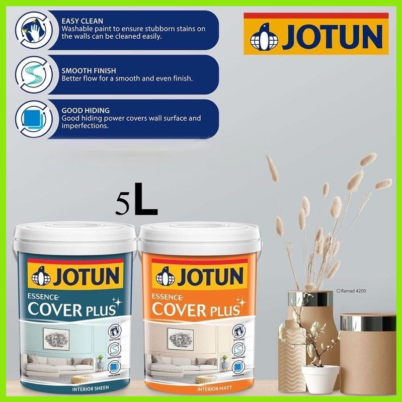 JOTUN 15L 0394 SOFT GREY ESSENCE COVER PLUS SHEEN & MATT/INTERIOR WALL PAINT /CAT BOLEH CUCI/KILAT & TAK KILAT