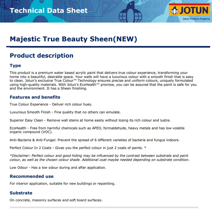 JOTUN MAJESTIC TRUE BEAUTY SHEEN 20L (PART 1/6) Cat Dinding Dalam Rumah serta BILIK