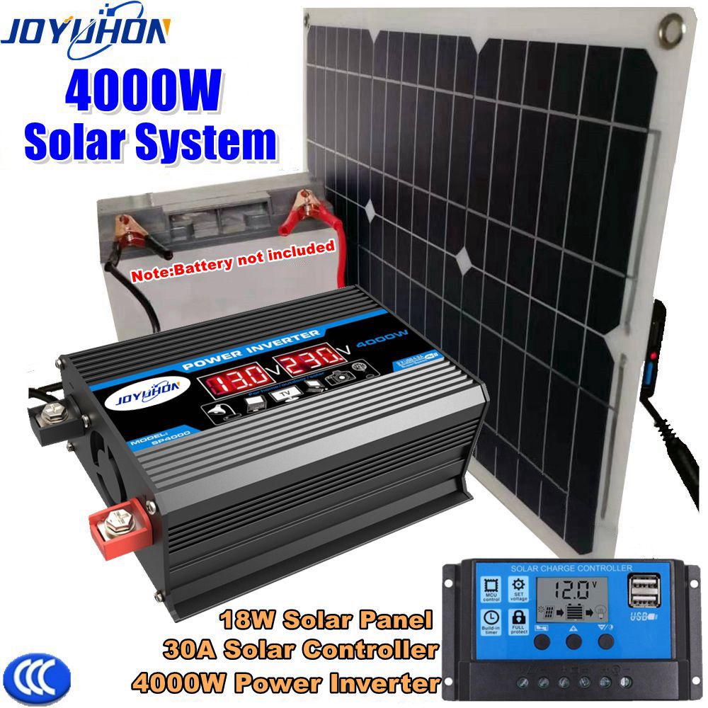 JOYUHON Solar Power System Set 6000W Power Inverter+18W Solar Panel+30A Controller DC12V TO AC220V for Home Car Outdoor