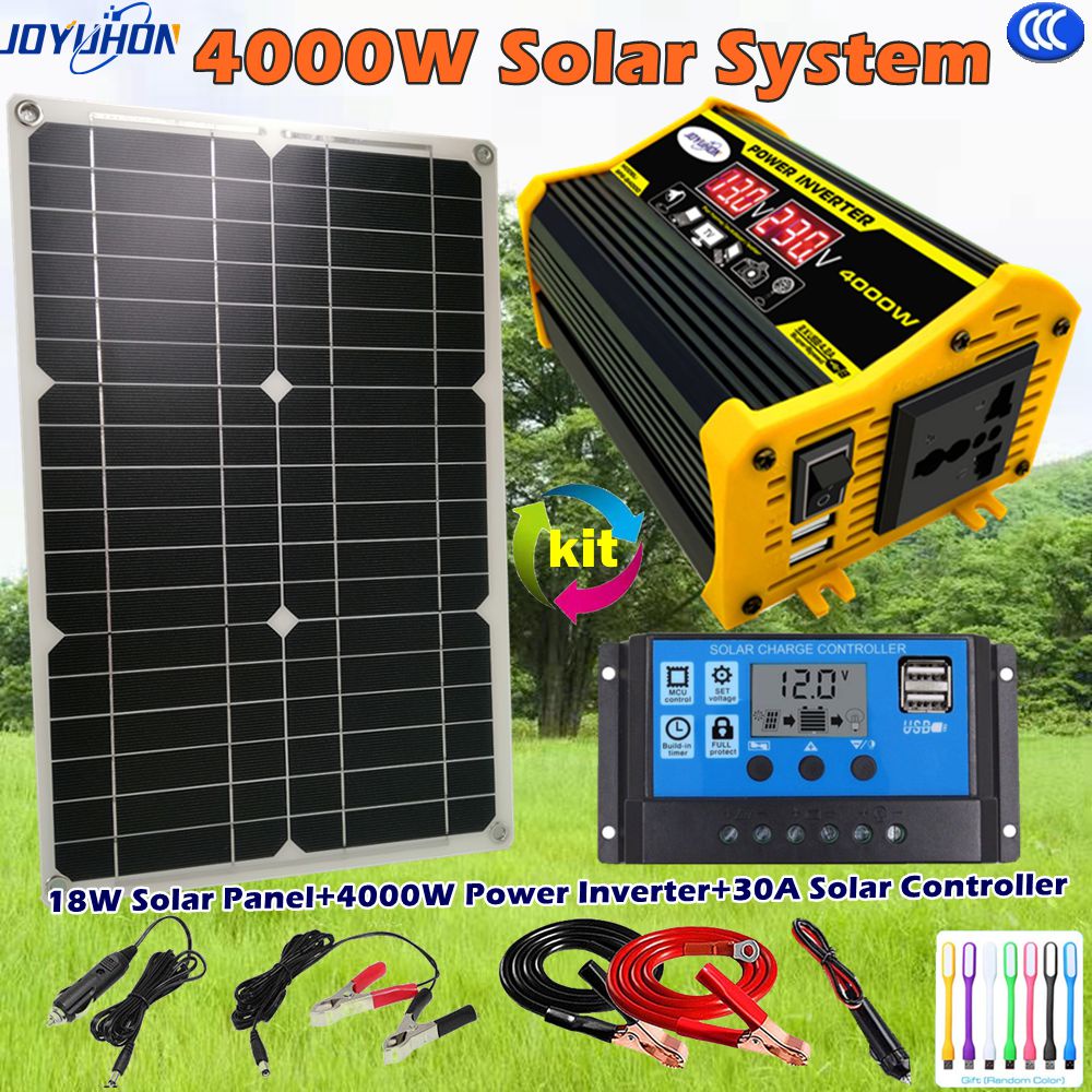 JOYUHON Solar System 18W Solar Panel 4000W Power Inverter 30A Controller with Universal Socket for Home Car Outdoor