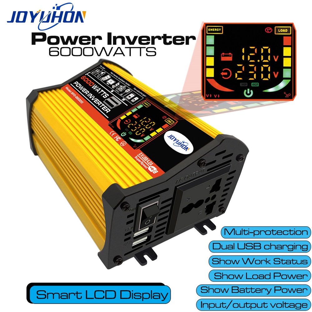 JOYUHON Solar System DC12V TO AC220V 6000W Power Inverter+18W Solar Panel+30A Controller with Voltage and Power Display