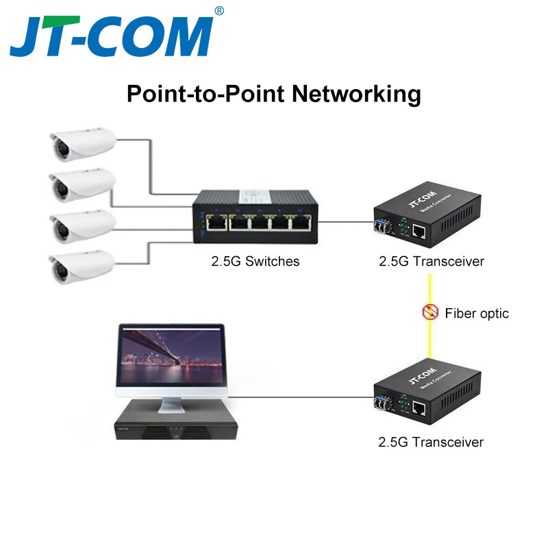 JT-COM 2.5G SFP Media Converter 2.5Gbps Fiber to RJ45 Fiber Optic SFP Fiber Switch with SFP Module Compatible Brand Switch