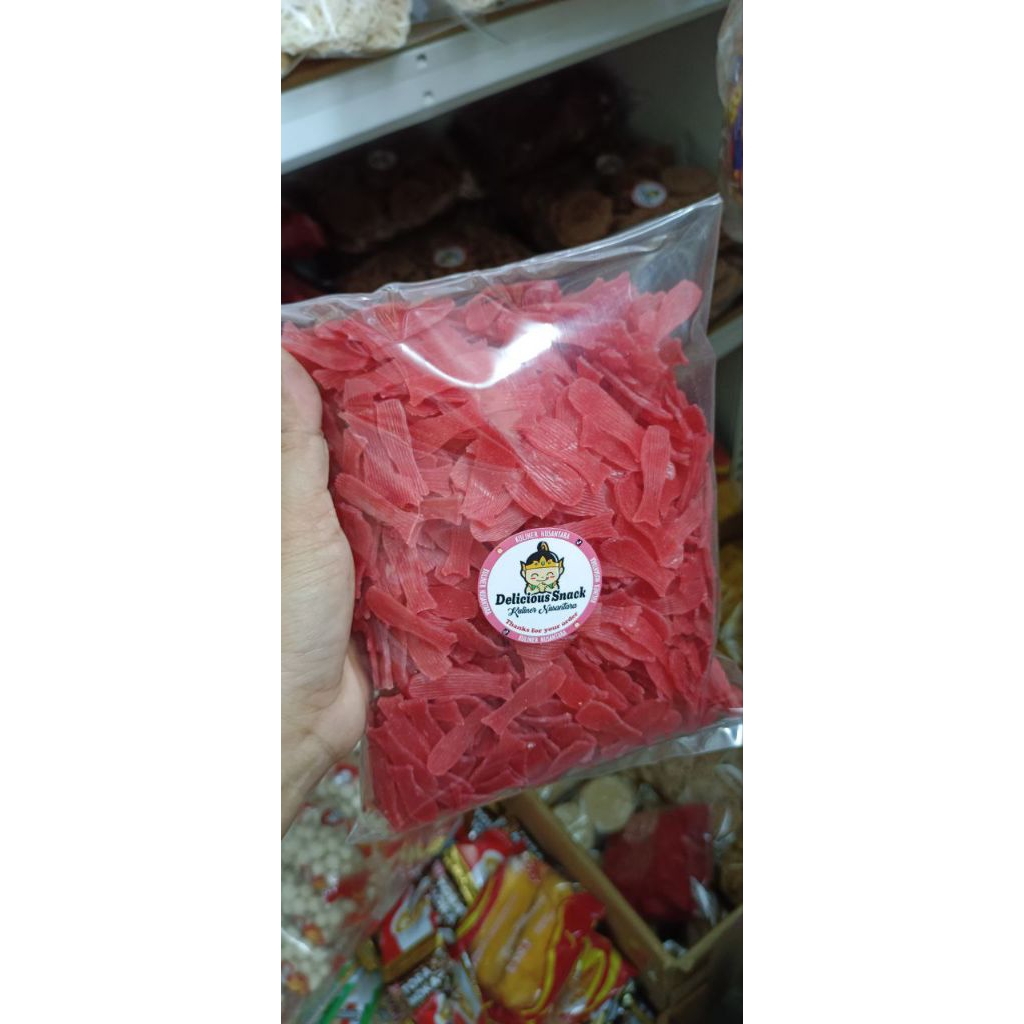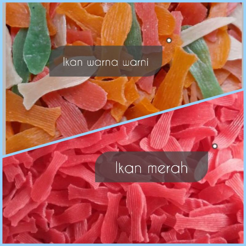 JUAK KRUPUK ANAK IKAN MERAH DAN ANAK IKAN WARNA MENTAH( 450gr )