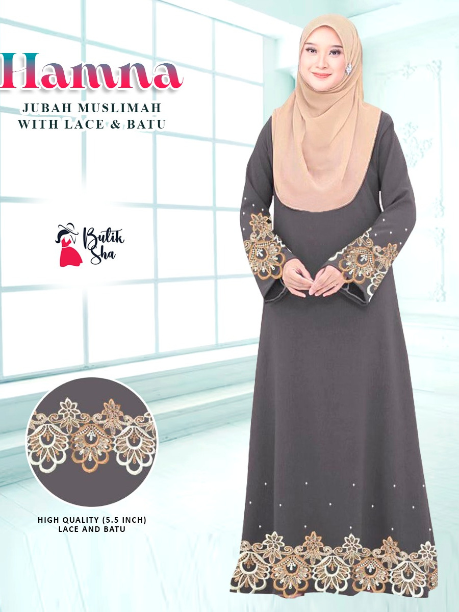 JUBAH ABAYA AFIYAH LACE WITH BATU LATEST DESIGN OF RAYA 2025