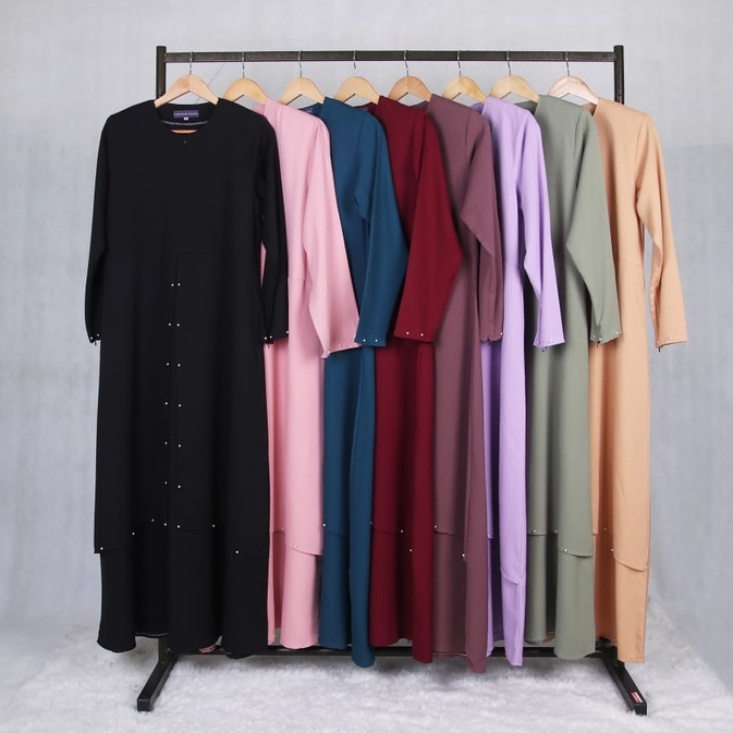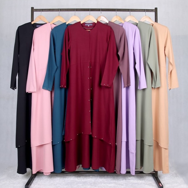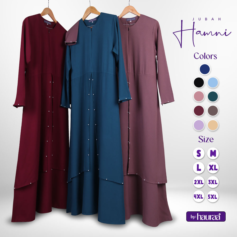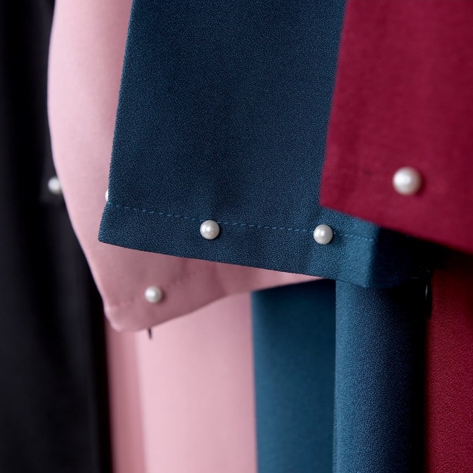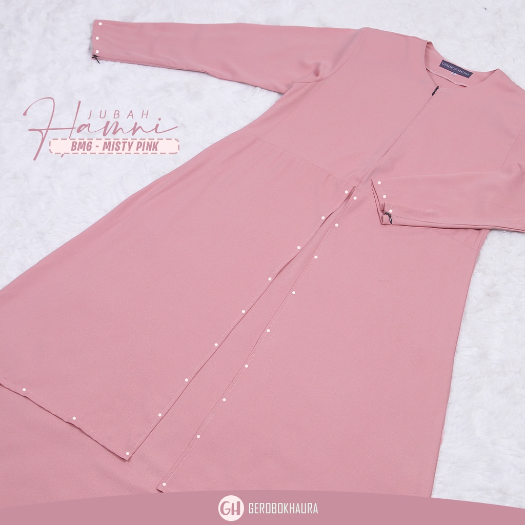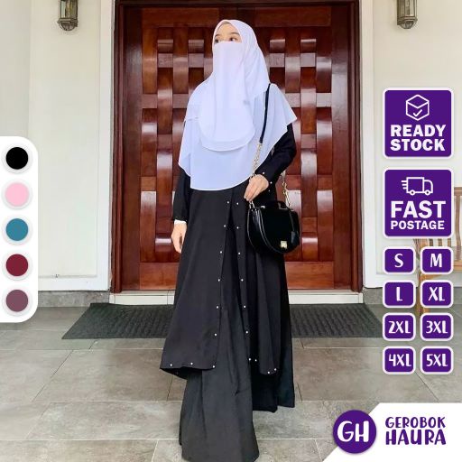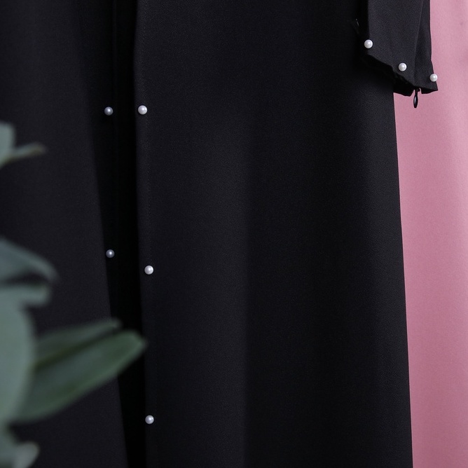 JUBAH MEWAH MINIMALIST + MANIK PEARL 2XL-5XL KOCEK SISI + ZIP MENYUSU WUDUK Hamni by gerobokhaura Hitam Black Pink Cream