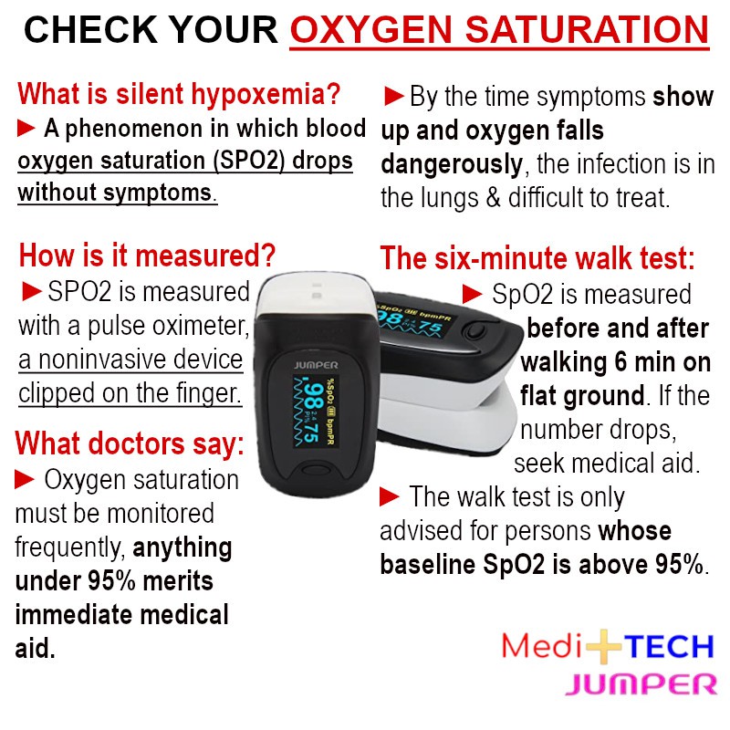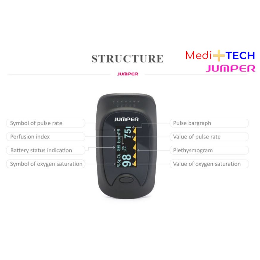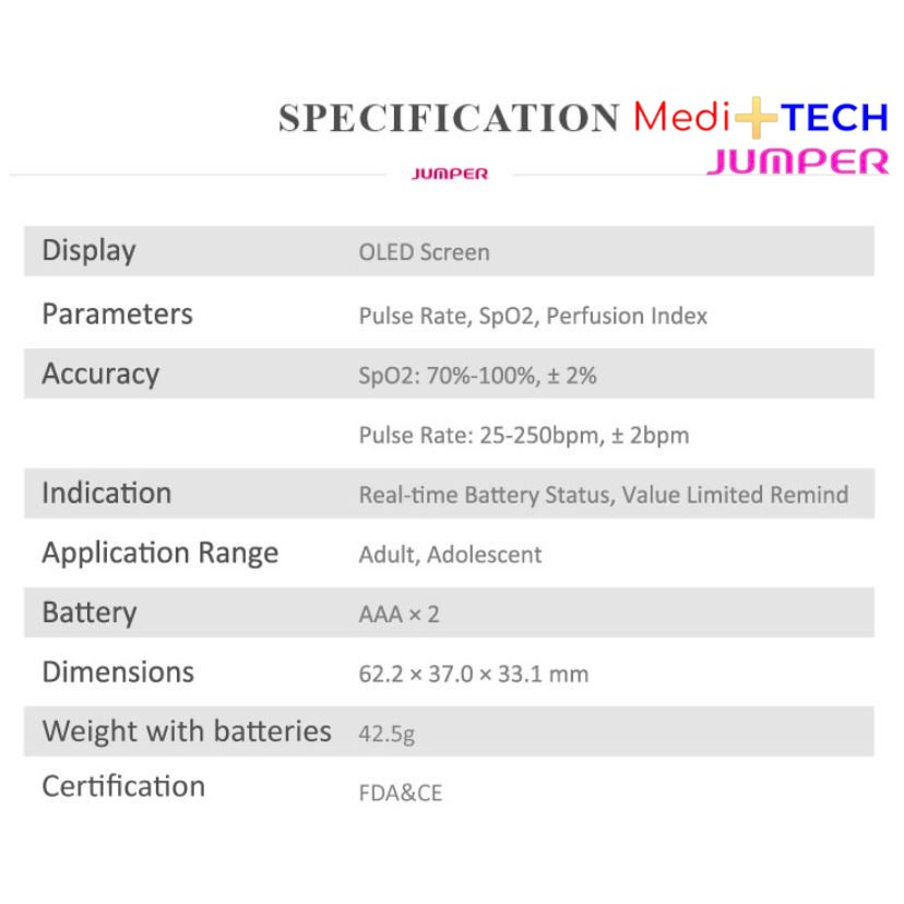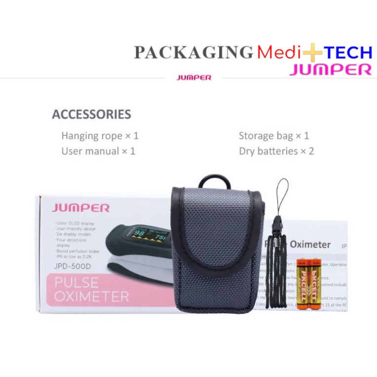 JUMPER Oximeter 500D Oxygen Saturation Monitor - SPO2 with Heart Rate Detection with free battery finger pulse oximeter