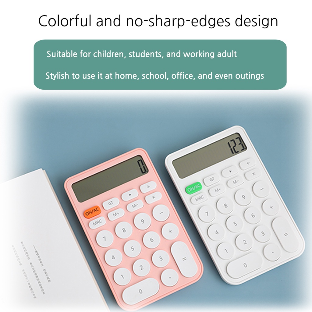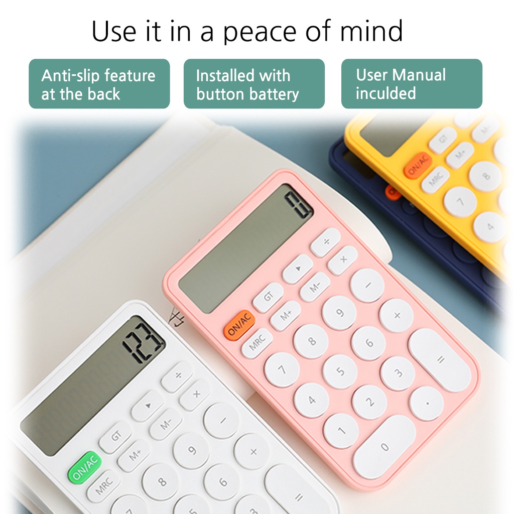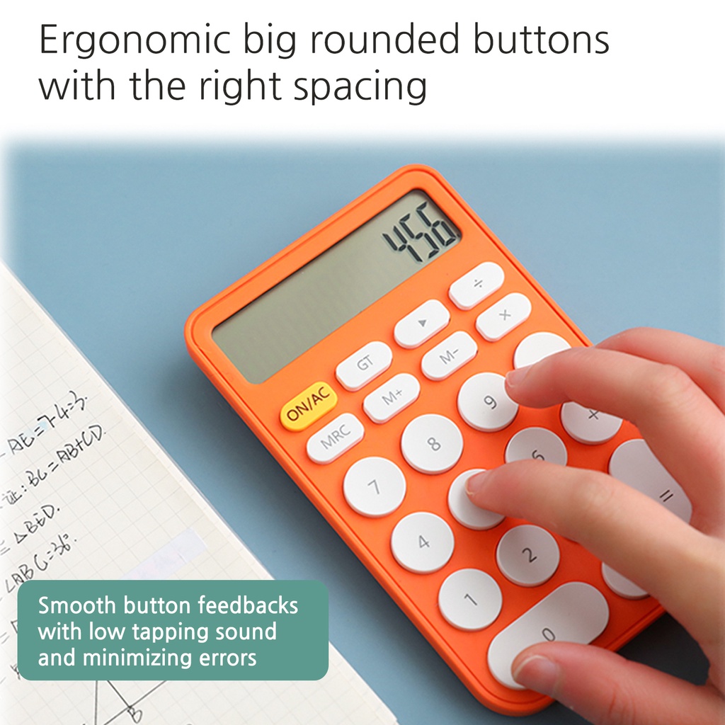 JUNNO Minimalist Compact Lightweight Calculator Rounded Design 22 Big Buttons Candy Colorful with Cell Battery