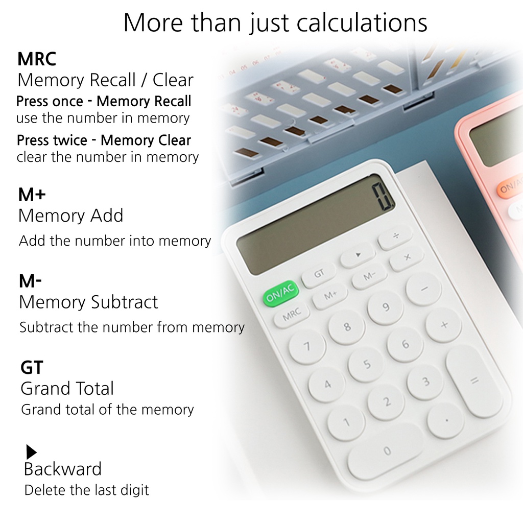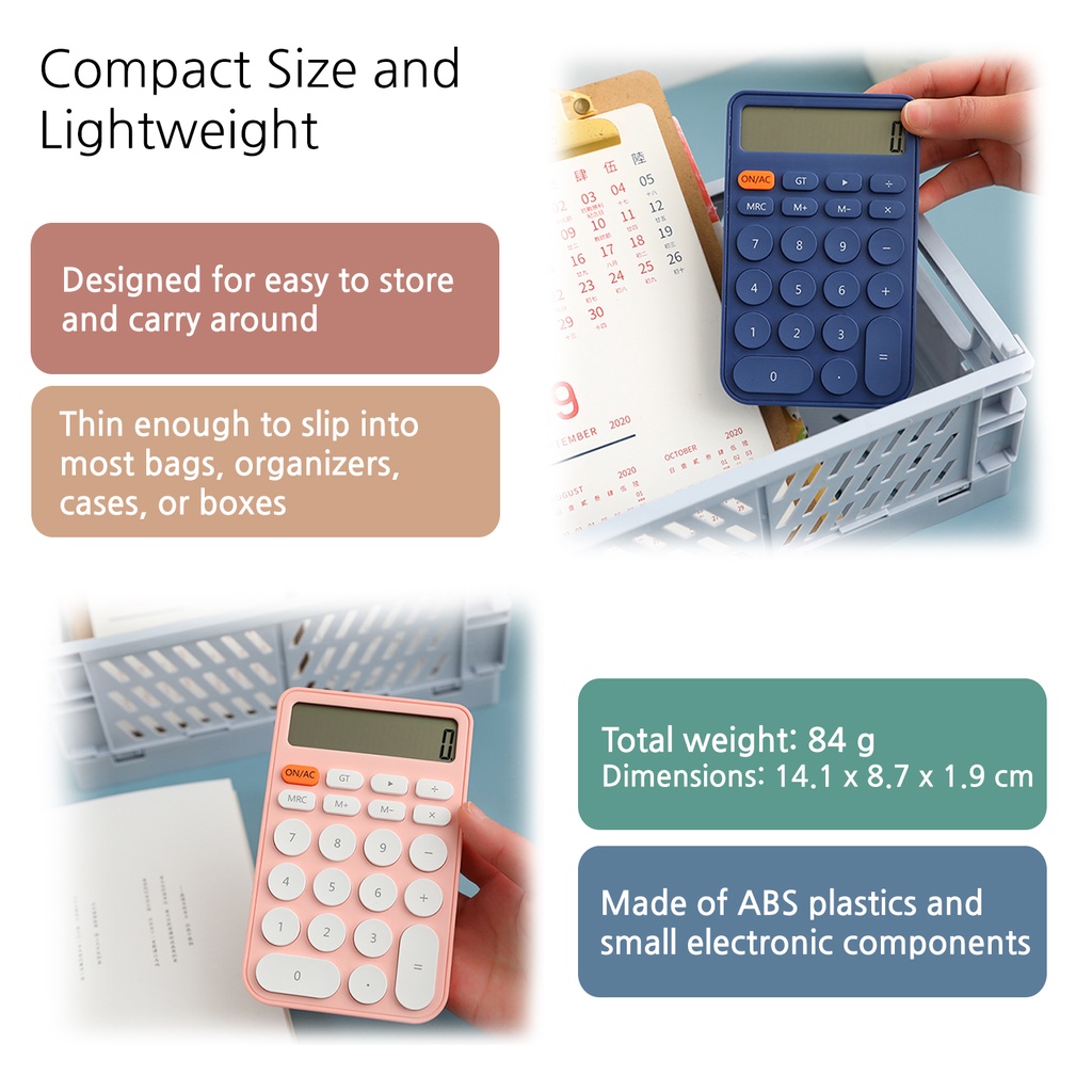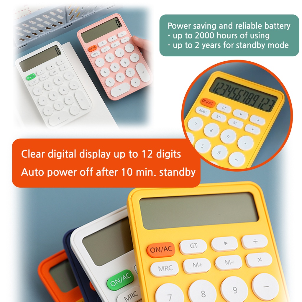 JUNNO Minimalist Compact Lightweight Calculator Rounded Design 22 Big Buttons Candy Colorful with Cell Battery