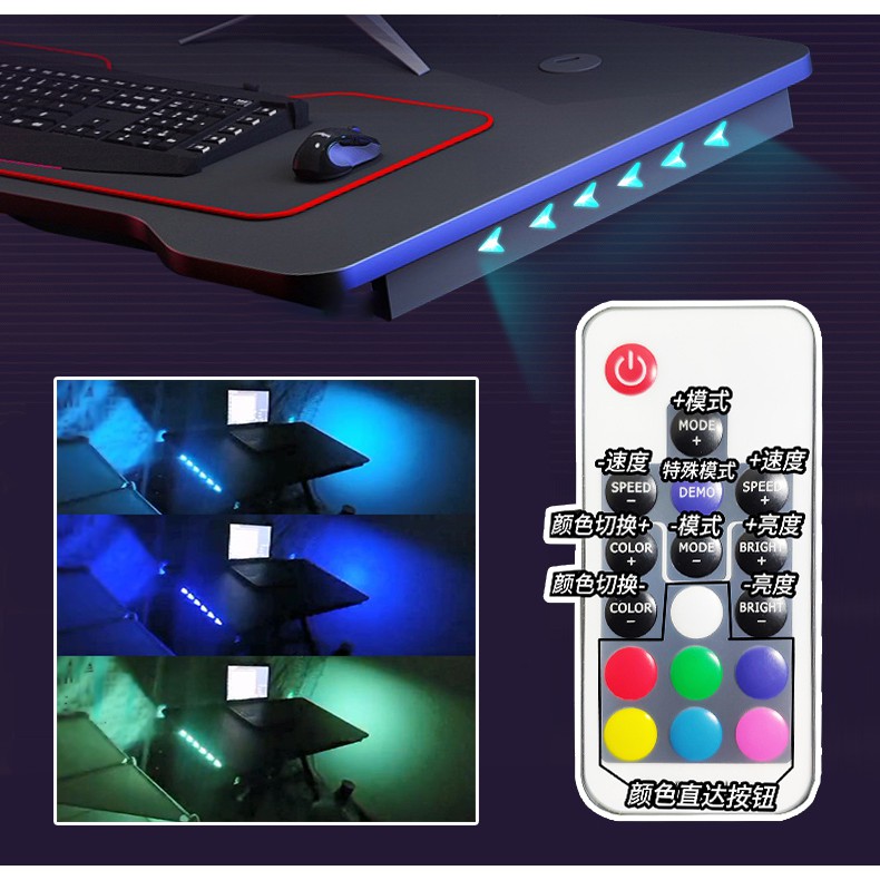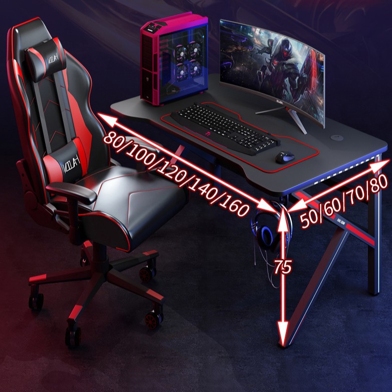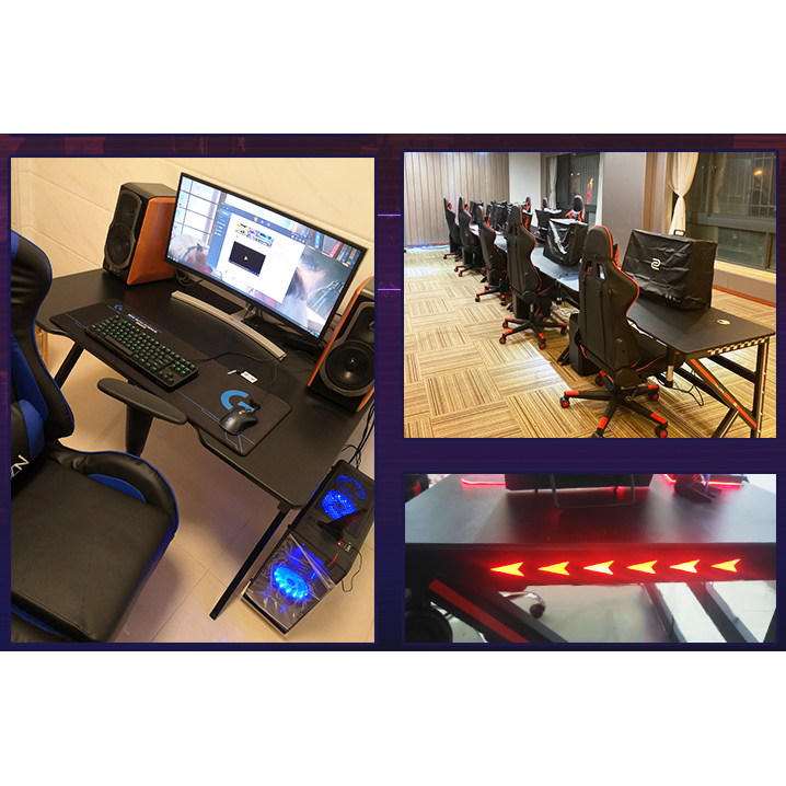 JUNYE RGB gaming table with lamp Meja permainan electric computer table and chair set home office laptop table 120cm 140cm
