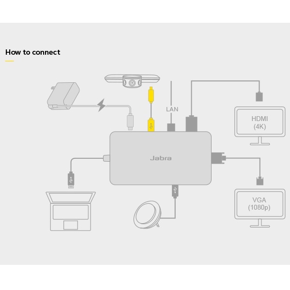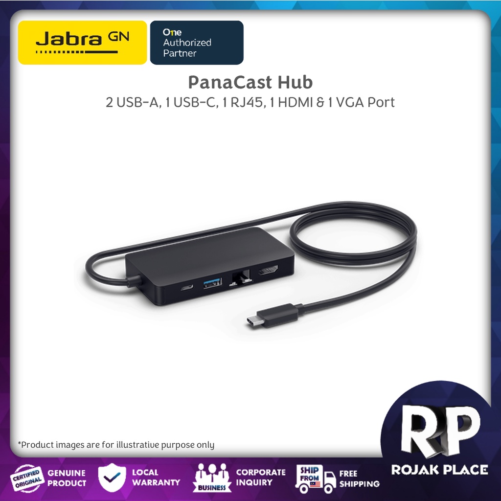 Jabra PanaCast USB Hub USB-A USB Type C Cable HDMi Ethernet RJ45 VGA Port [14207-69]