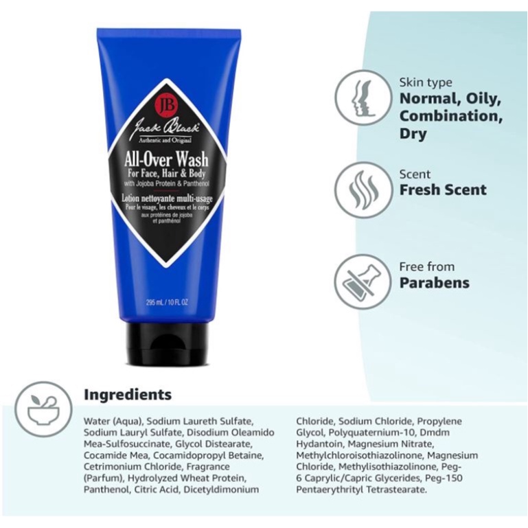 Jack Black All-Over Wash for Hair for Face, Hair & Body | Gentle and Sulfate-free | 295ml and 975ml
