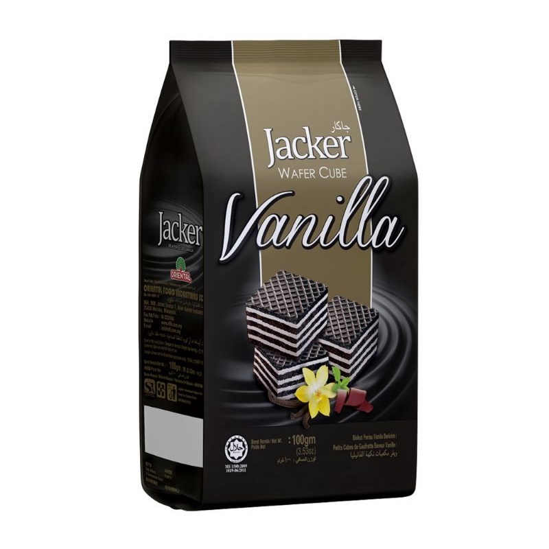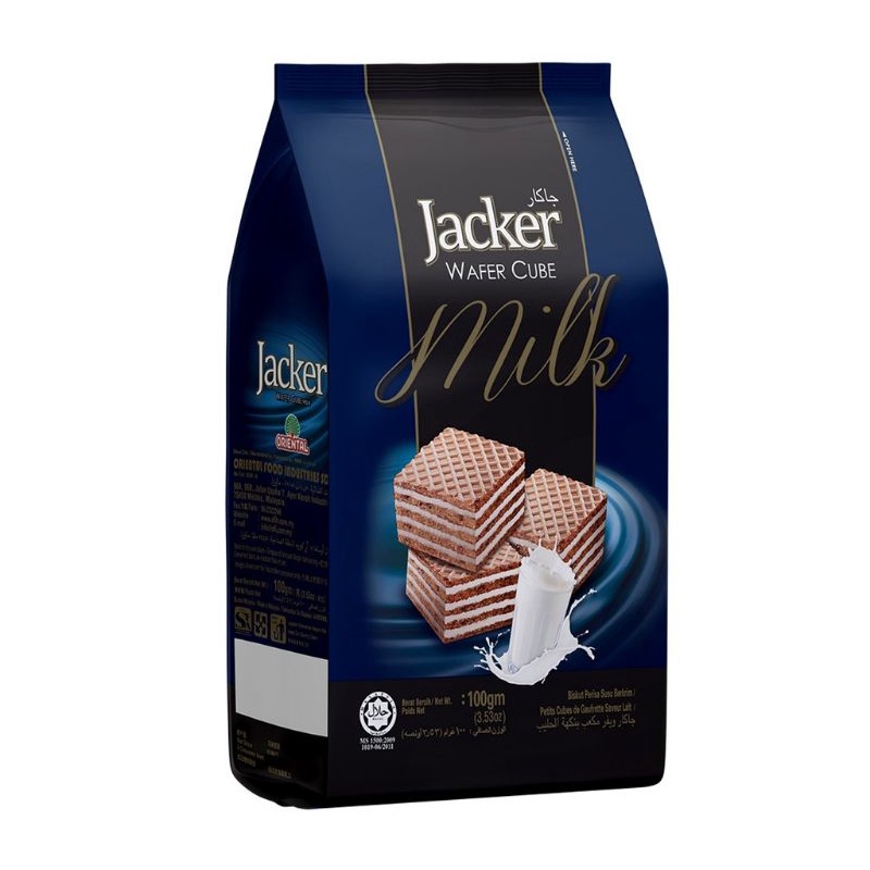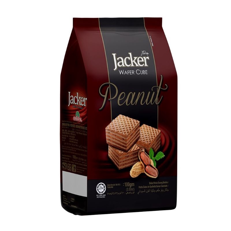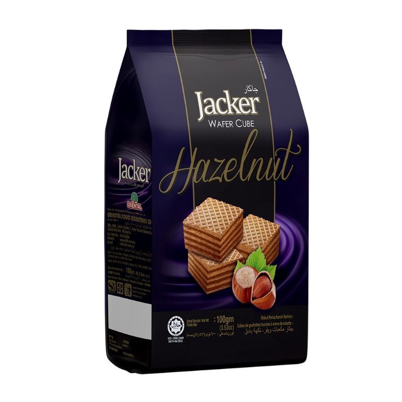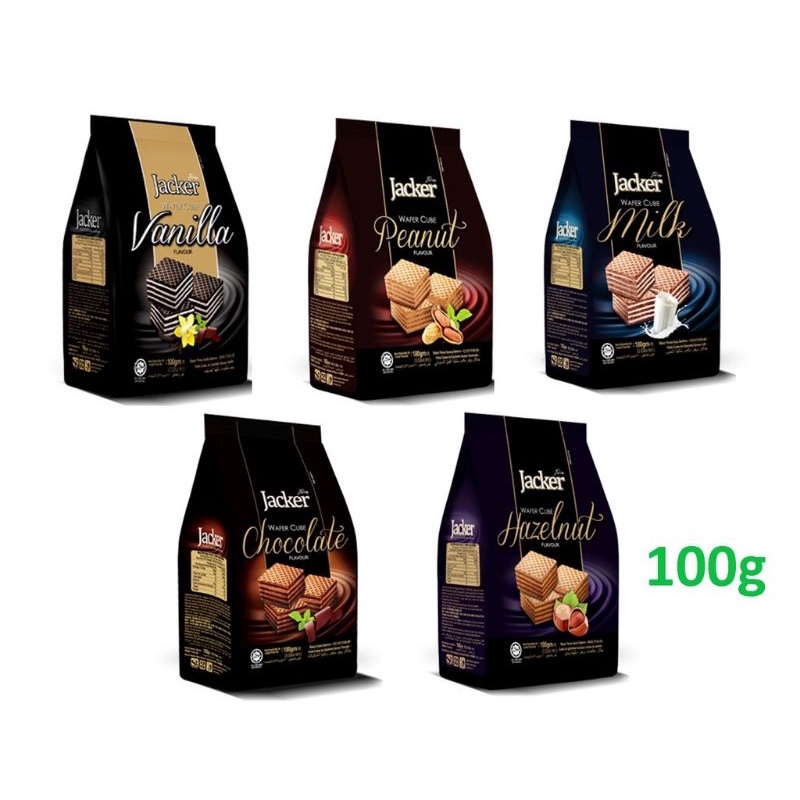 Jacker Wafer Cube 100g - Vanilla Milk Chocolate Hazelnut Peanut / Biskut Wafer Jacker Coklat Susu Kacang