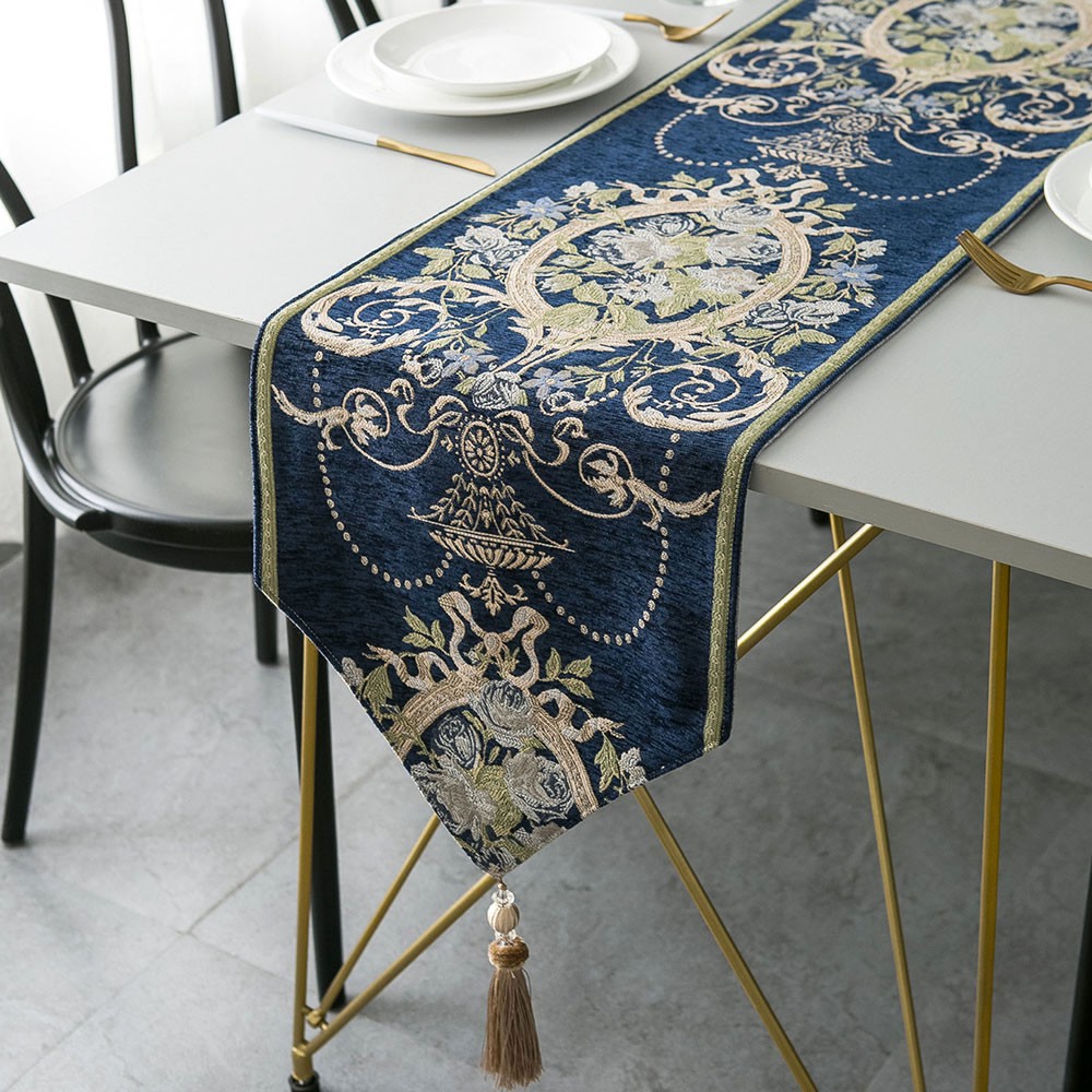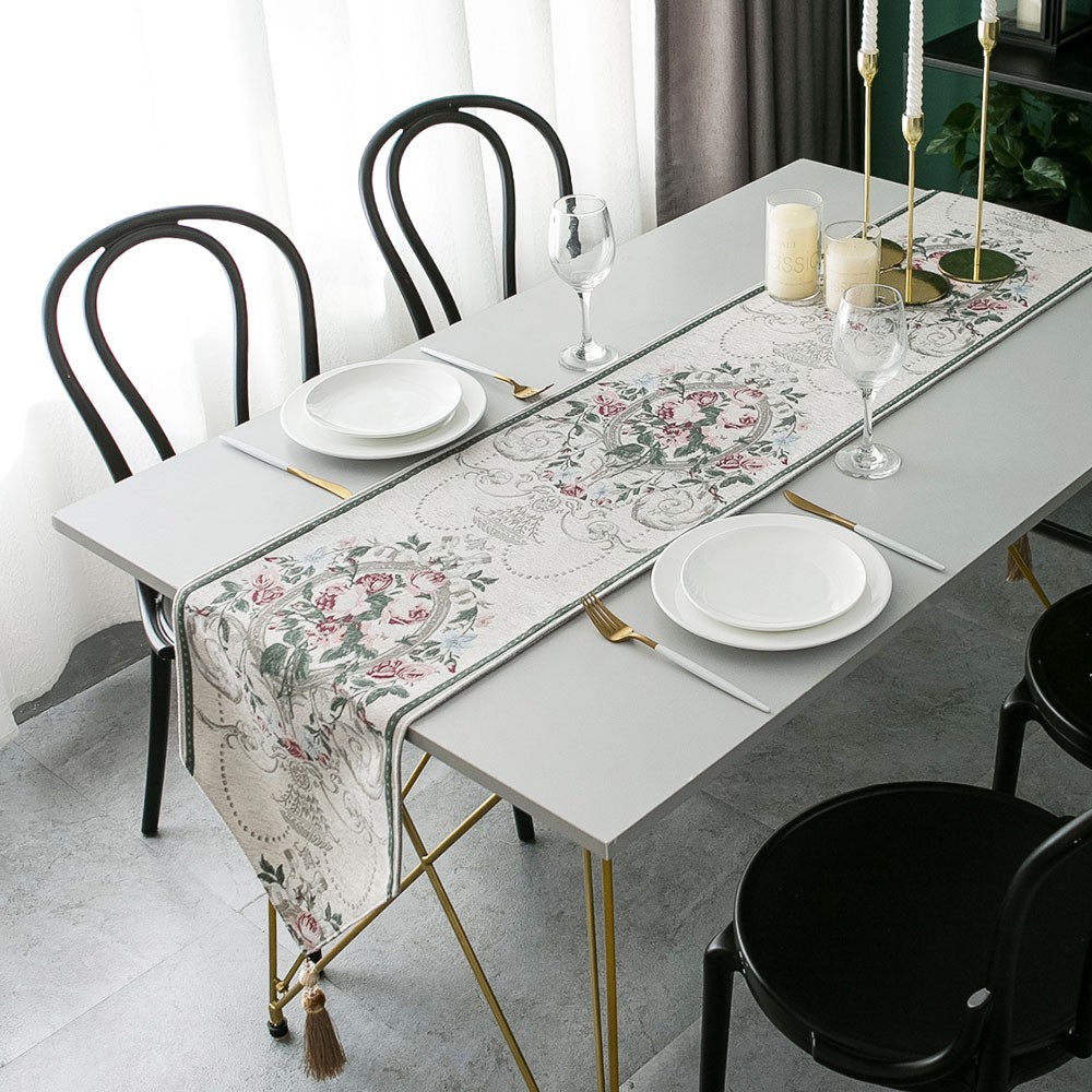 Jacquard Weave Table Runner Luxury European Floral Style Table Runners with Tassels Dining Wedding Party Tabletop Decoration