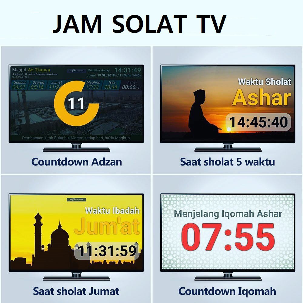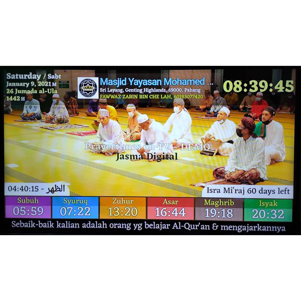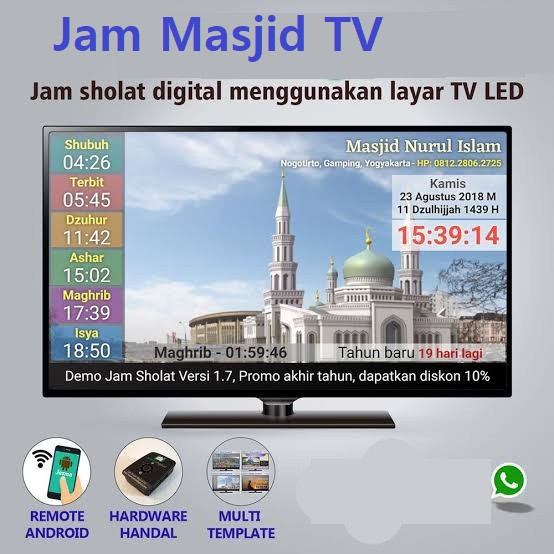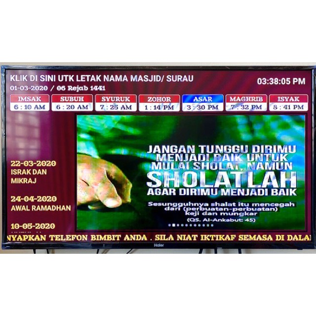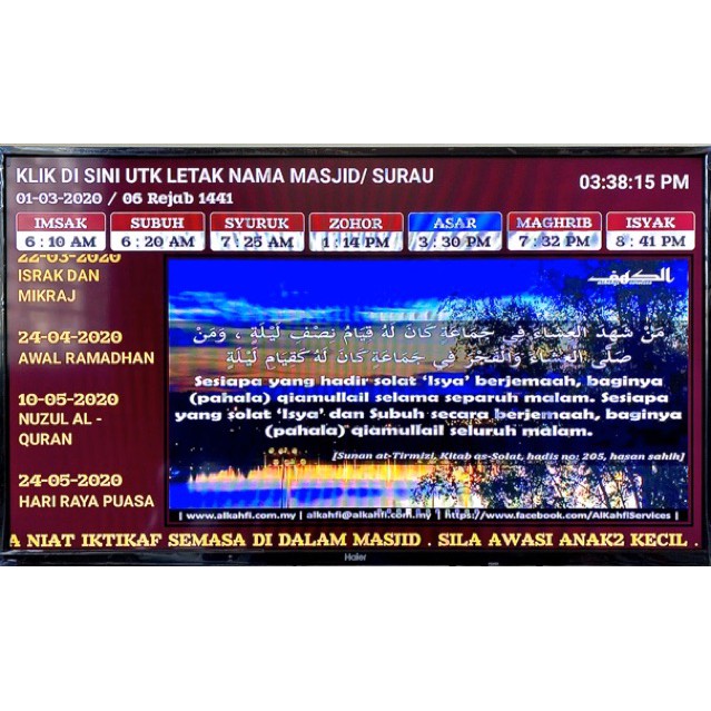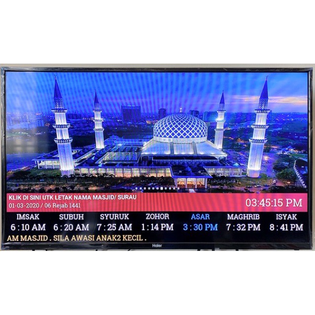 Jam Waktu Solat/jam Masjid TV HD Untuk Masjid atau Surau Pejabat Restoran Rumah