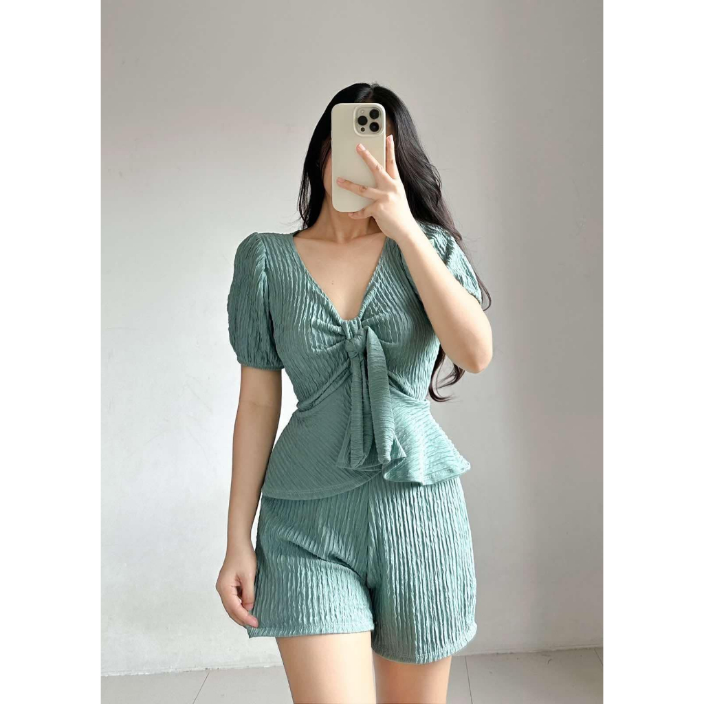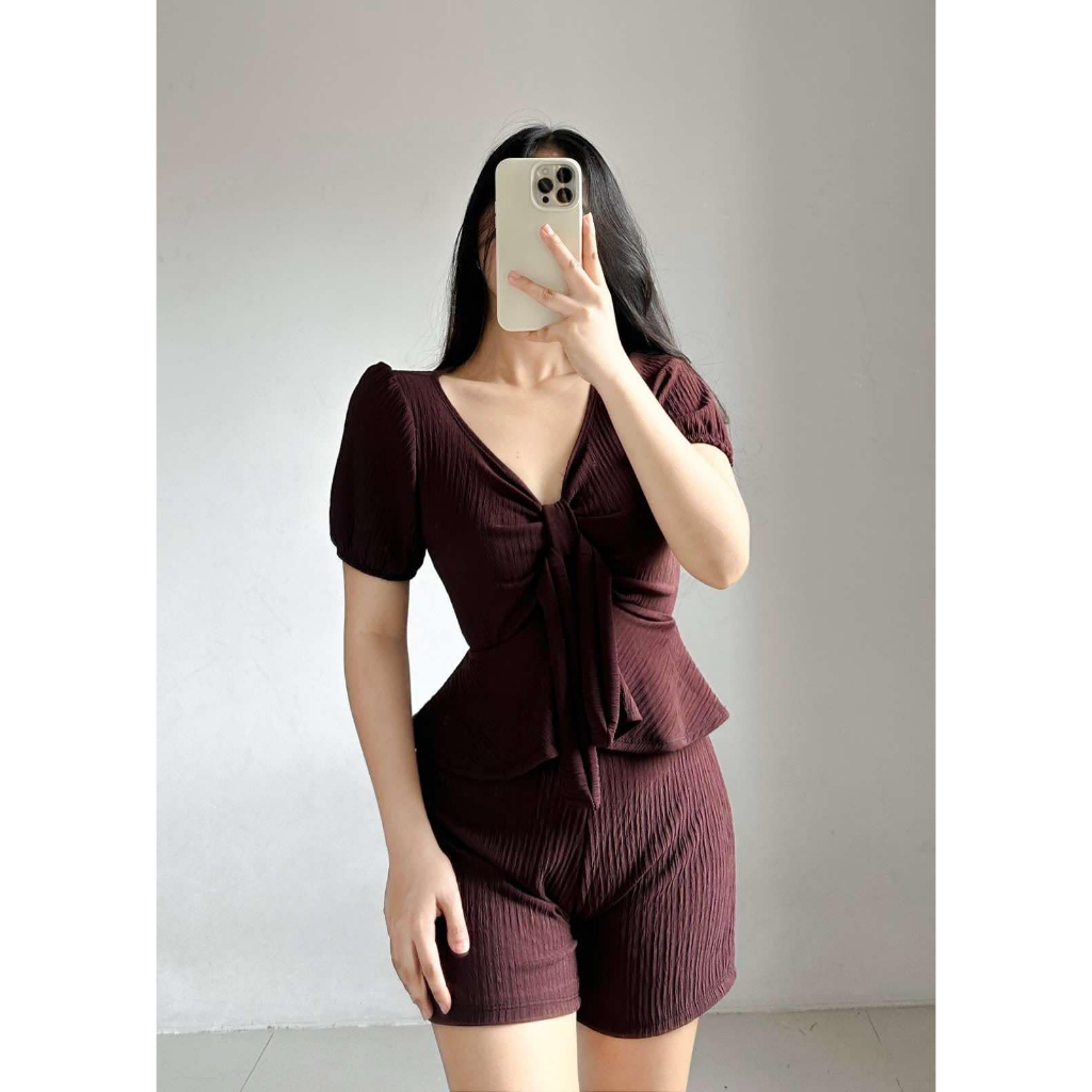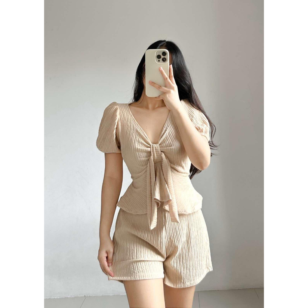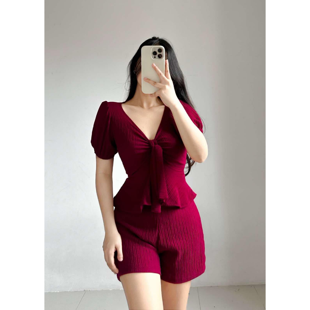 Jannah Barbara Top and Shorts Terno for Woman Panglakad Coordinates Plain Coords Set Puff Sleeves