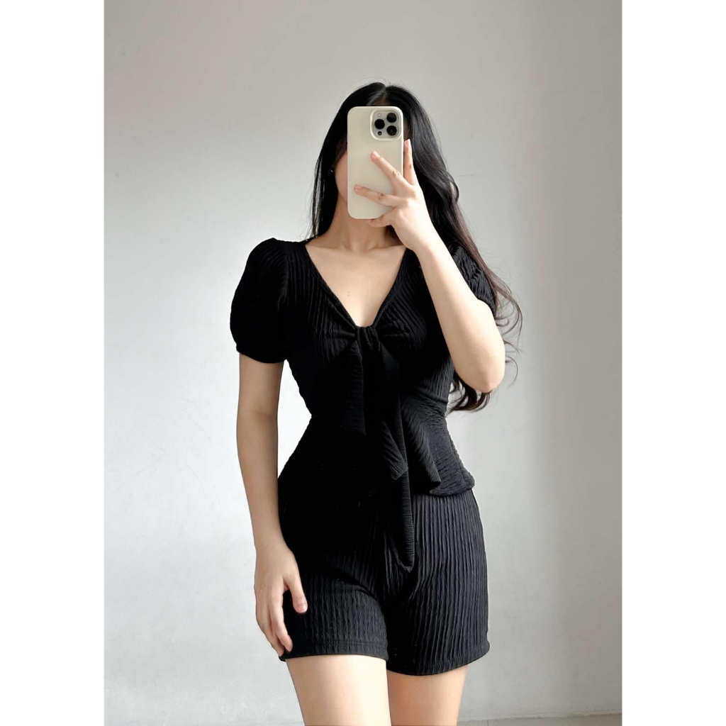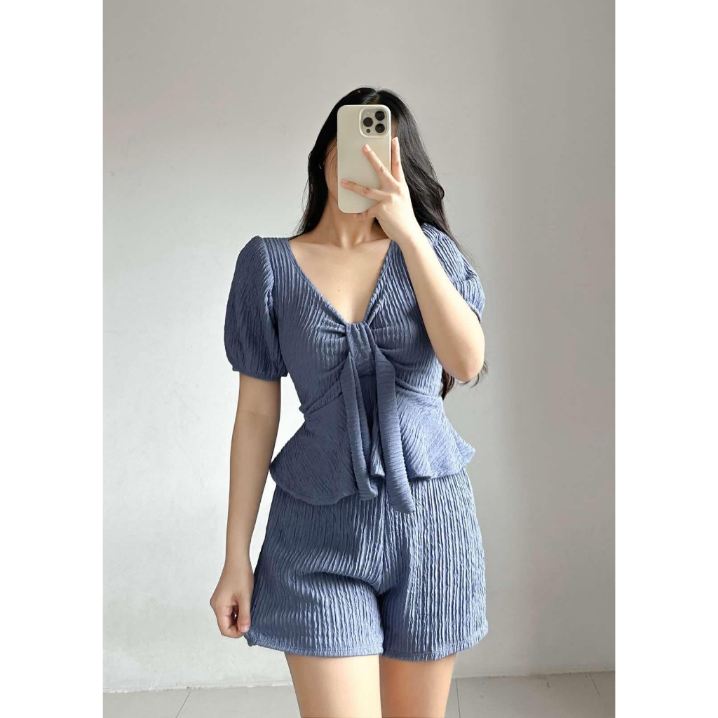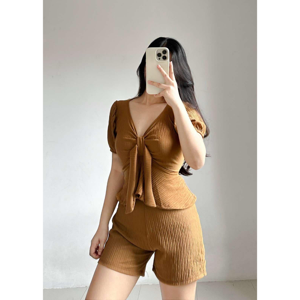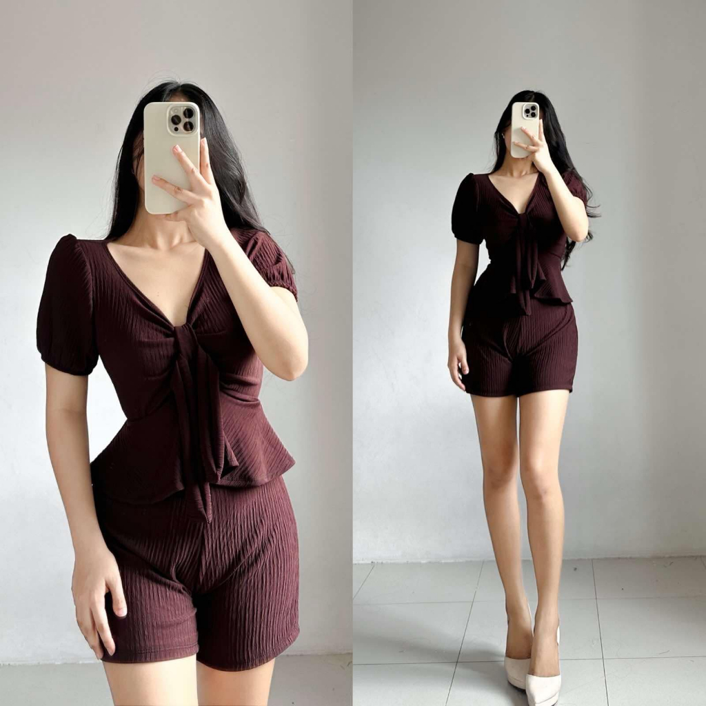 Jannah Barbara Top and Shorts Terno for Woman Panglakad Coordinates Plain Coords Set Puff Sleeves
