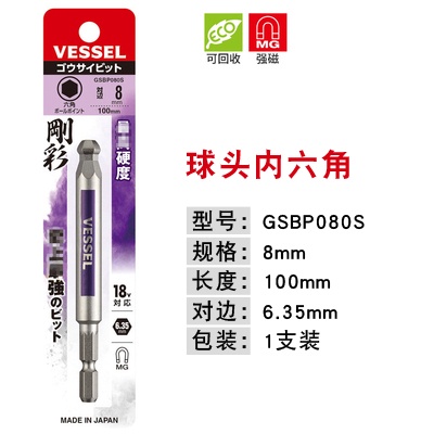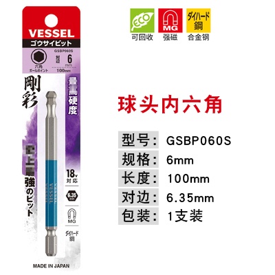 Japan VESSEL Ball Head Allen Batch Head/Metric Extended Ball Head Allen Wrench GSBP