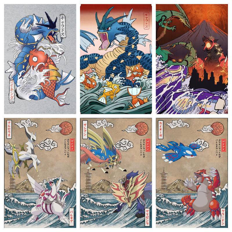 Japanese Anime Poster Pokemon Pikachu Art Portrait Comic Wave Poster Charizard Canvas Painting Wall Decor