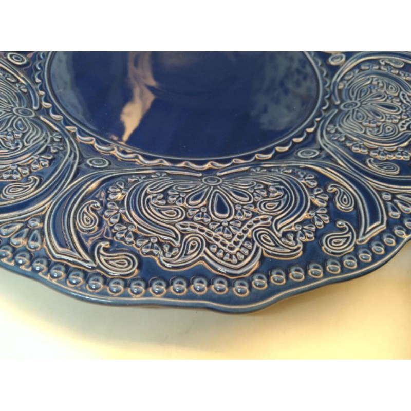Japanese Blue Ceramic Food Plates Thick Lips Dinner Plate