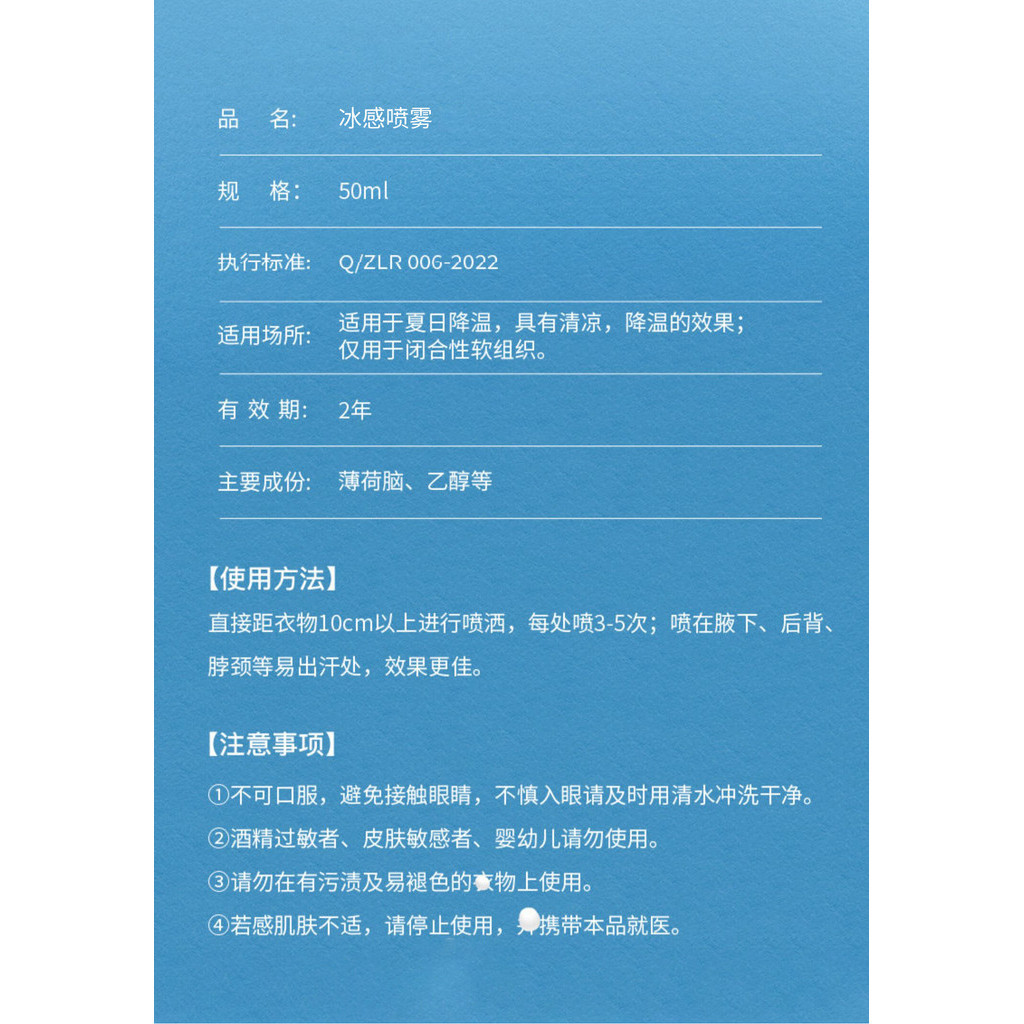 Japanese Cooling Spray Military Training Anti-Heatstroke Cold Handy Gadget Fast Cold Feeling Clothing Spray 50ml