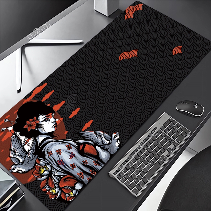 Japanese Dragon Mouse Pad Mat Samurai 90x40 Gaming Large Table Mousepad Anime Gamer Mause Pad Big Oni Artistic Keyboard Mousepads Desk accessories