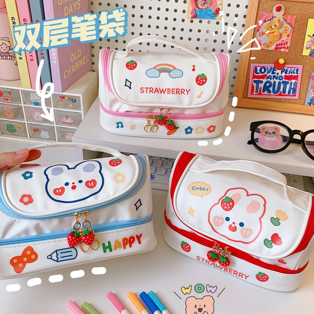 Japanese Pencil Case Large Capacity Pencil Case Cute Stationery Pencil Case Double Layer Pen Case PU Portable Pencil Bag