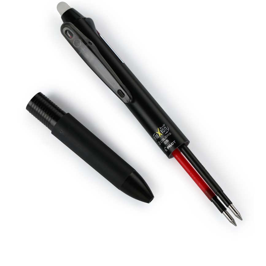 Japanese Pilot Frixion erasable ballpoint pen with 2 black and red refills