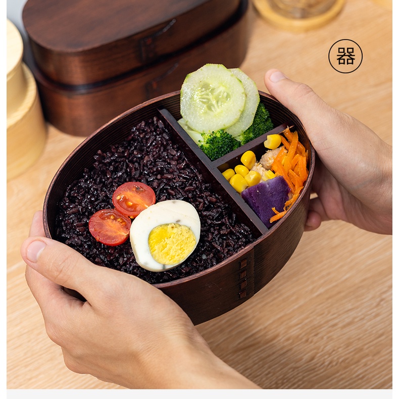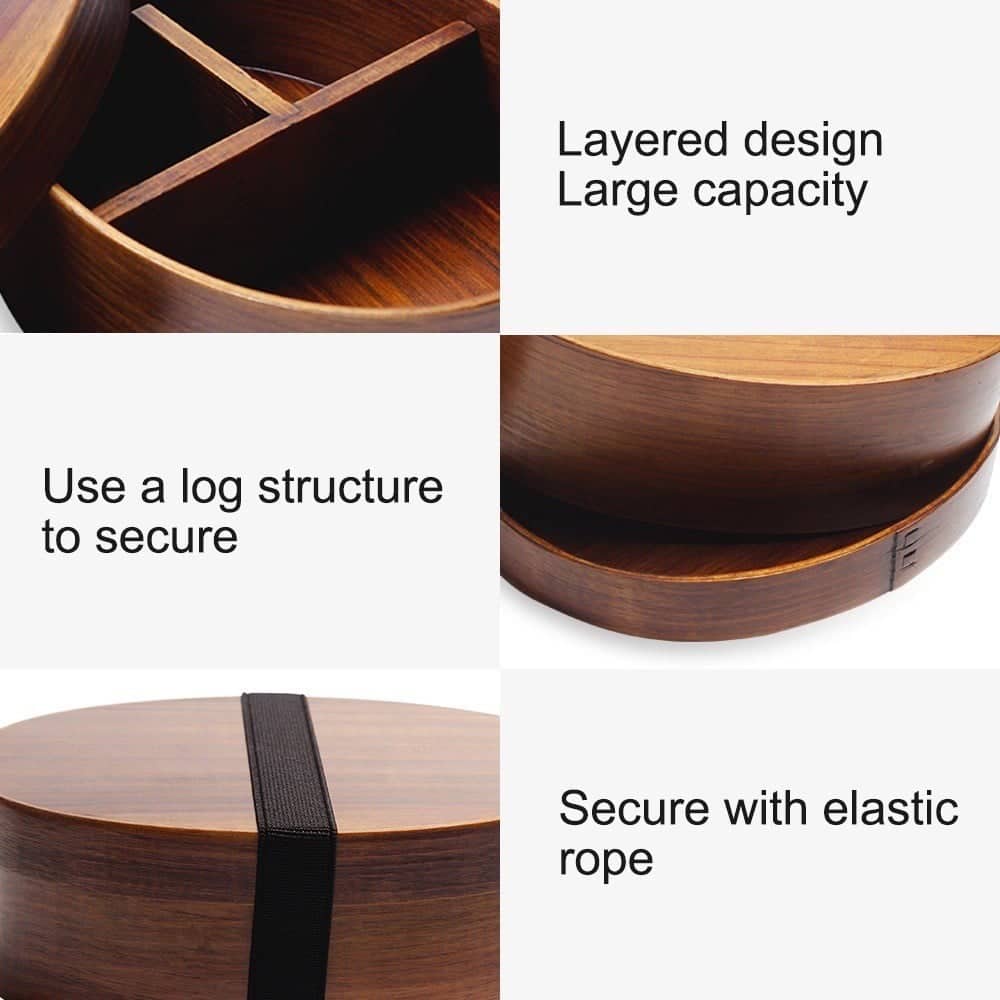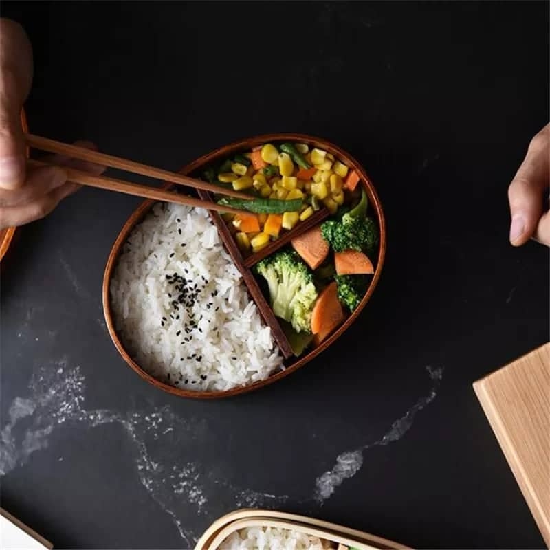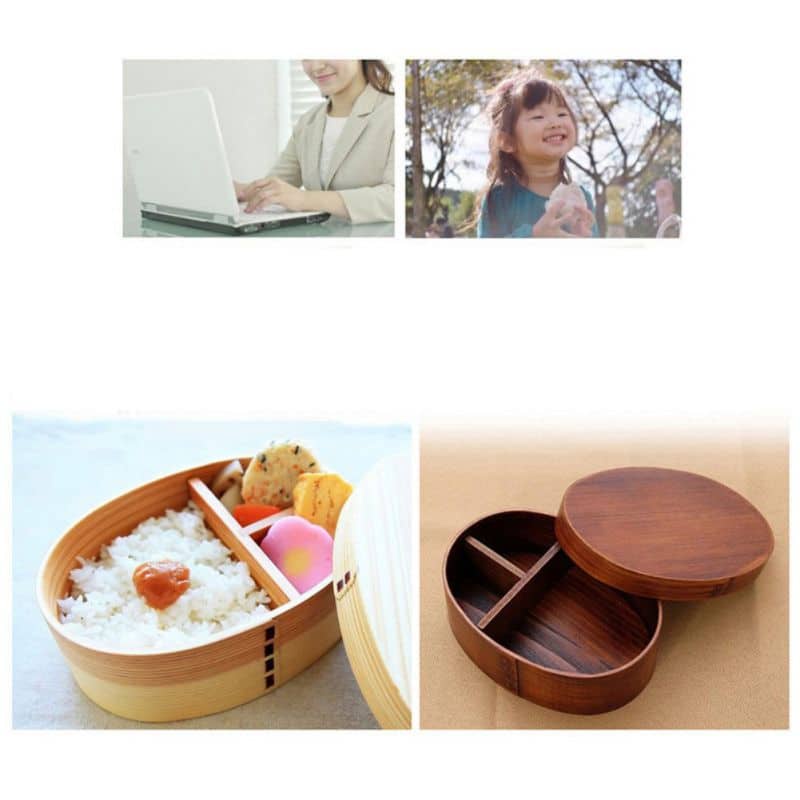 Japanese Wooden Lunch Box Compartment Sushi Food Container for Kids Wooden Bento Box